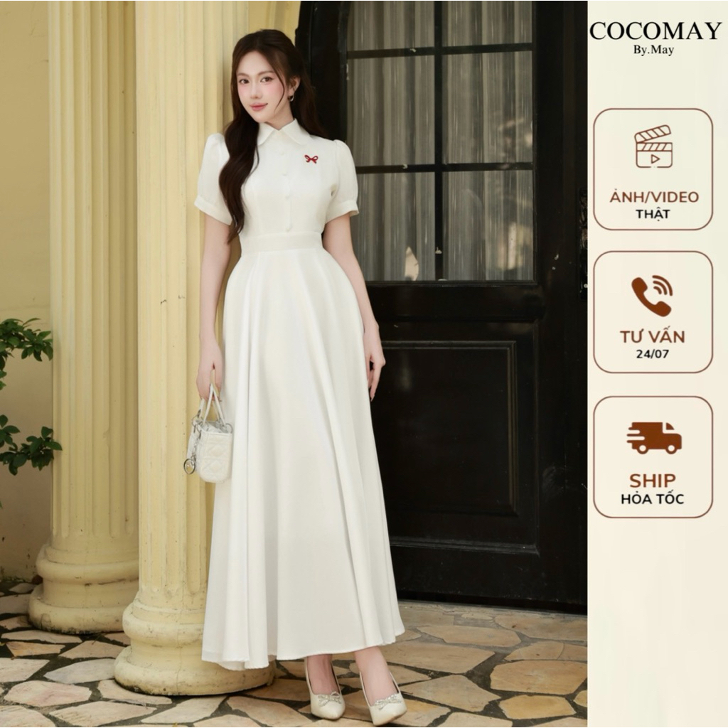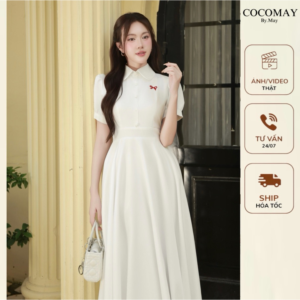 COCOMAY - Đầm Léonie White -Đầm trắng Cổ Sen Tay Ngắn thanh lịch và ngọt ngào