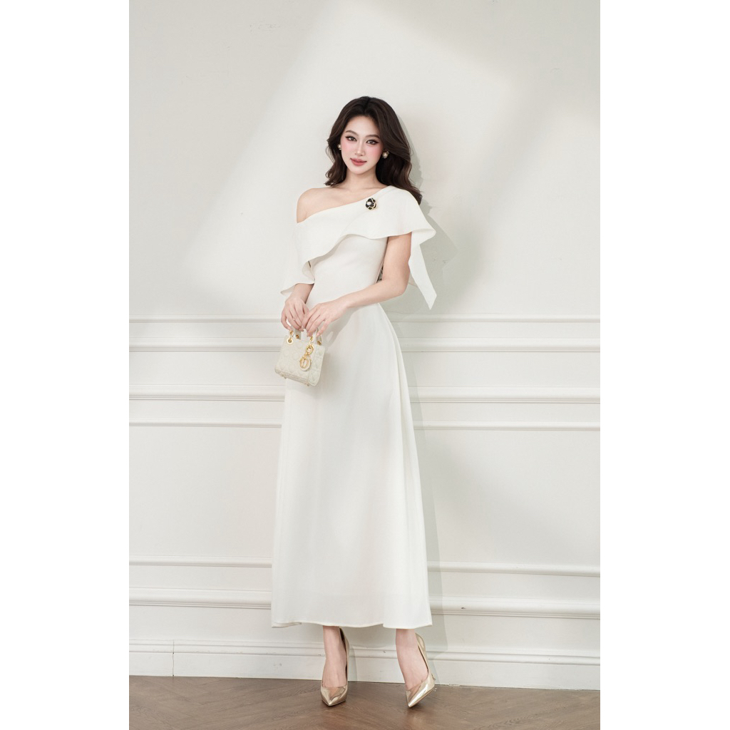 COCOMAY - LILIA ONE-SHOULDER DRESS - Đầm trể lệch vai hoa trà