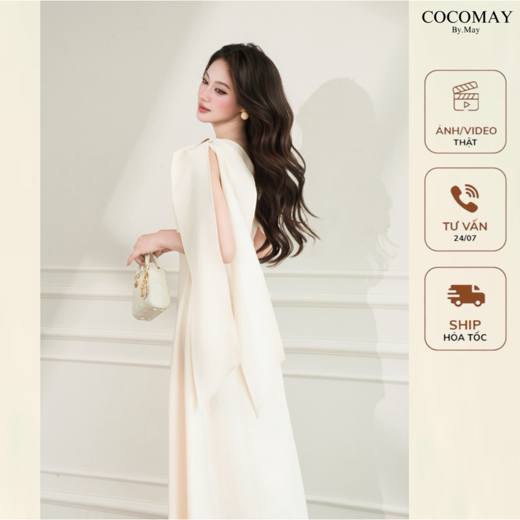 COCOMAY - MAYMY Off-Shoulder Tặng kèm cài áo trên vai Đầm lệch vai midi Nử dress - Màu kem vàng