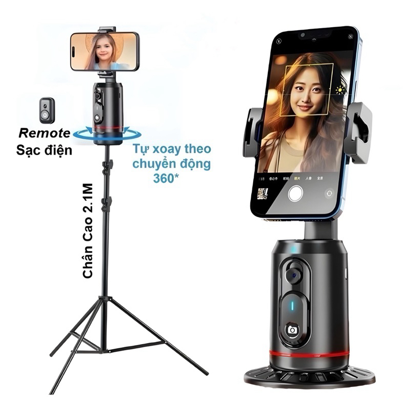 Gimbal Q02 + Q04 AI tự xoay 360° nhận diện khuôn mặt & cử chỉ, phù hợp phát trực tiếp quay video