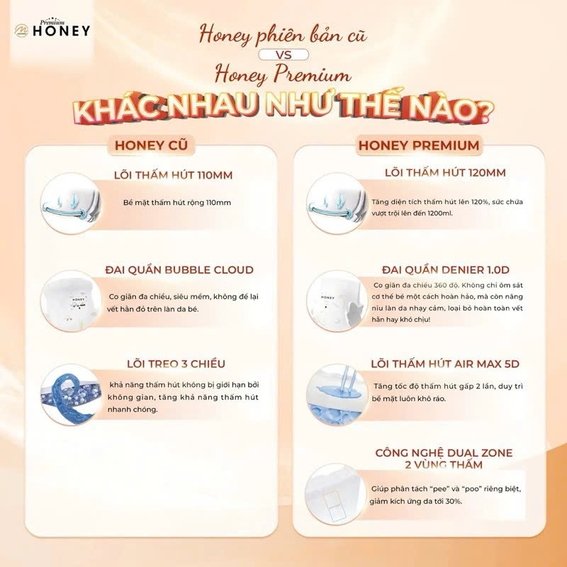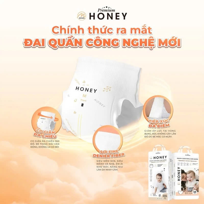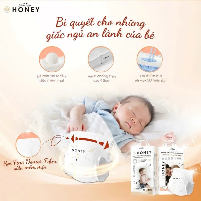 Bỉm/tã HONEY dán/quần mềm mịn siêu thấm đủ size NB66/S52/M46/M52/L48/XL44/XXL42/XXXL40/XXXXL38
