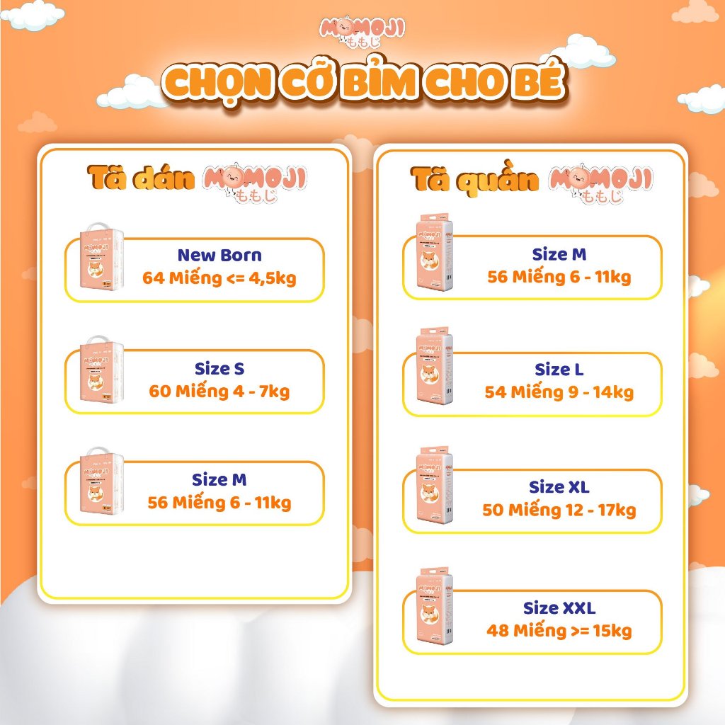 Tã Bỉm Momoji Siêu mỏng mềm mại, chống tràn, an toàn, siêu thấm NB64/S60/M56/L54/XL50/XXL48 cho bé 5 - 30KG