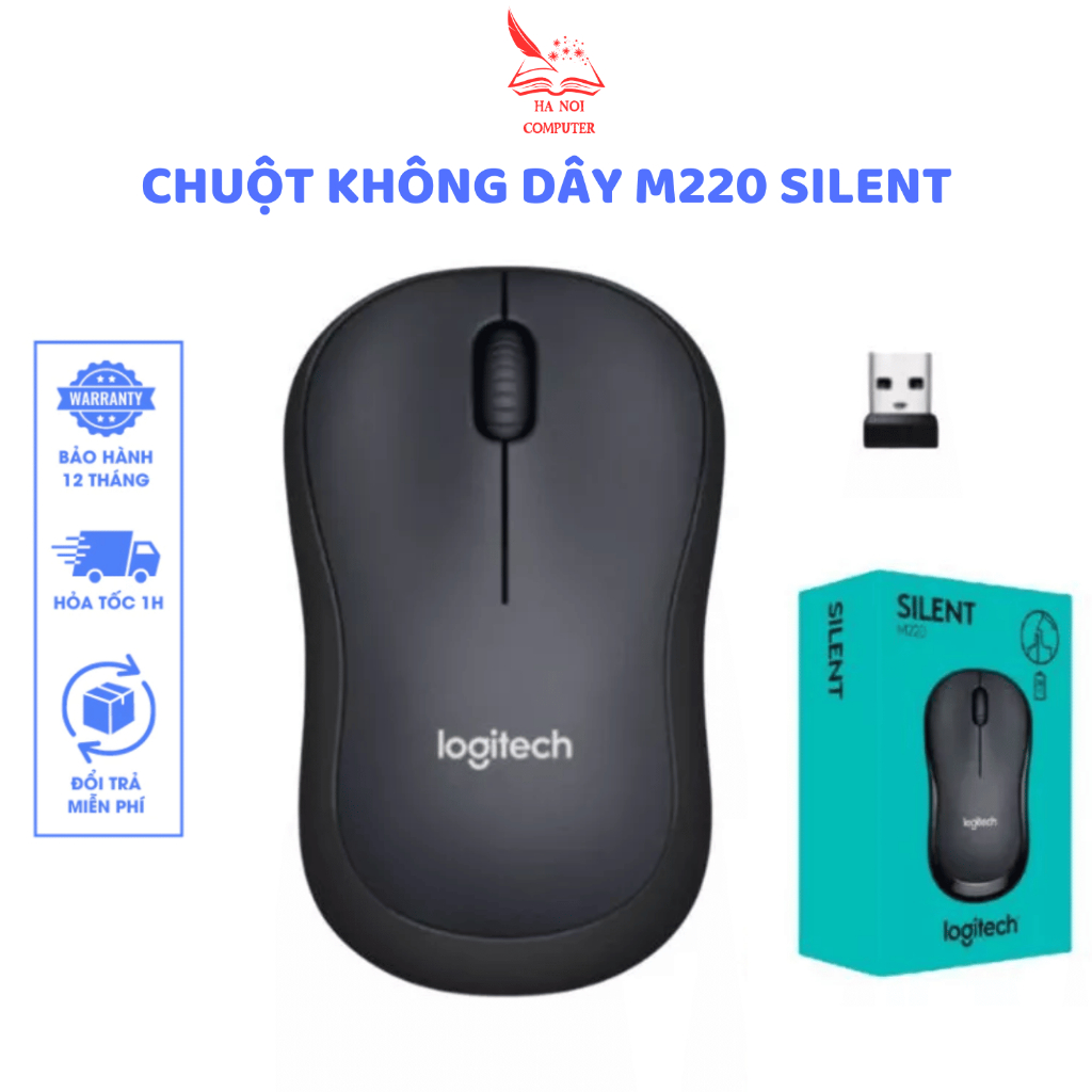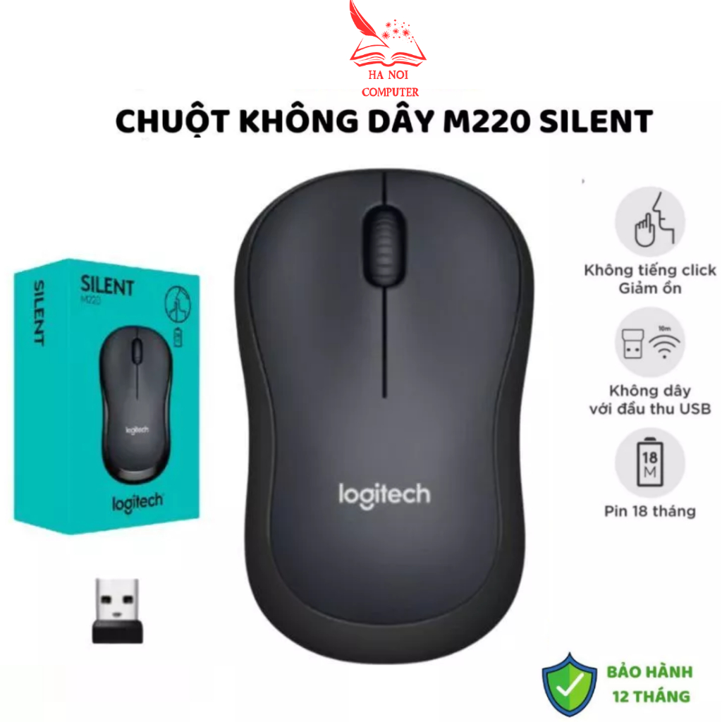 Chuột Không Dây Logitec M220 Silent Aphavin - Giảm Ồn 90%, USB, Tặng Pin, Phù Hợp PC/Laptop BH 1 Năm