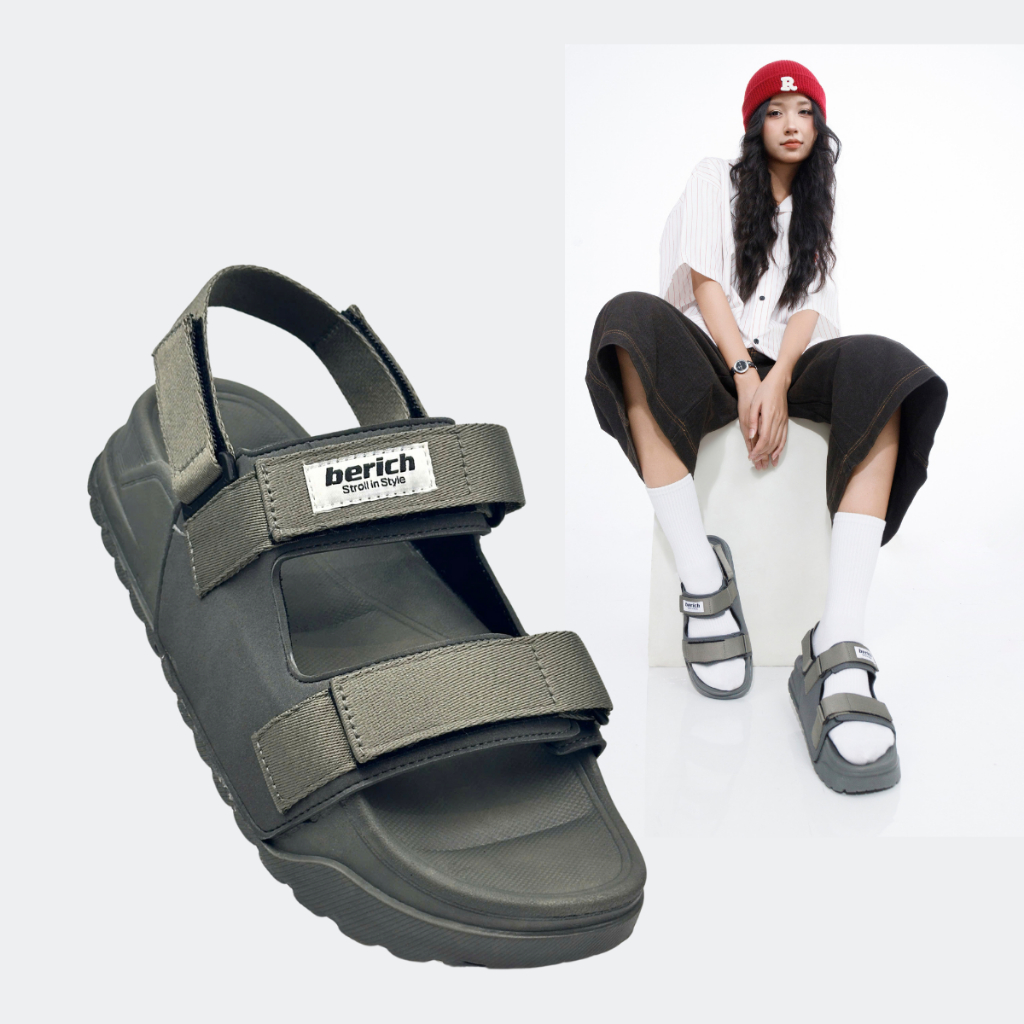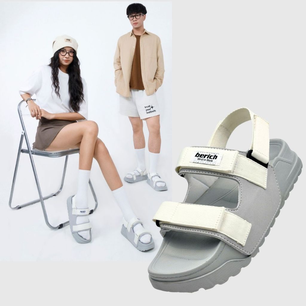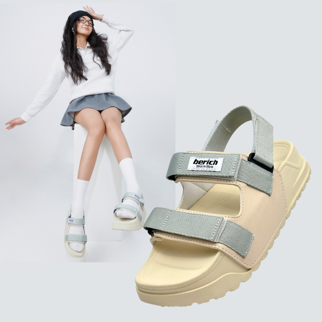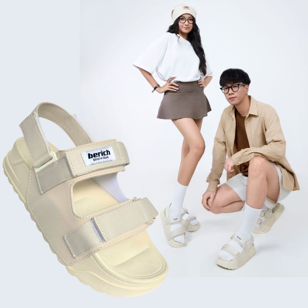 Giày Sandal Nam Nữ BERICH Quai Ngang Màu Be Kem Siêu Nhẹ - Bền - Êm - Dễ Thương BE977