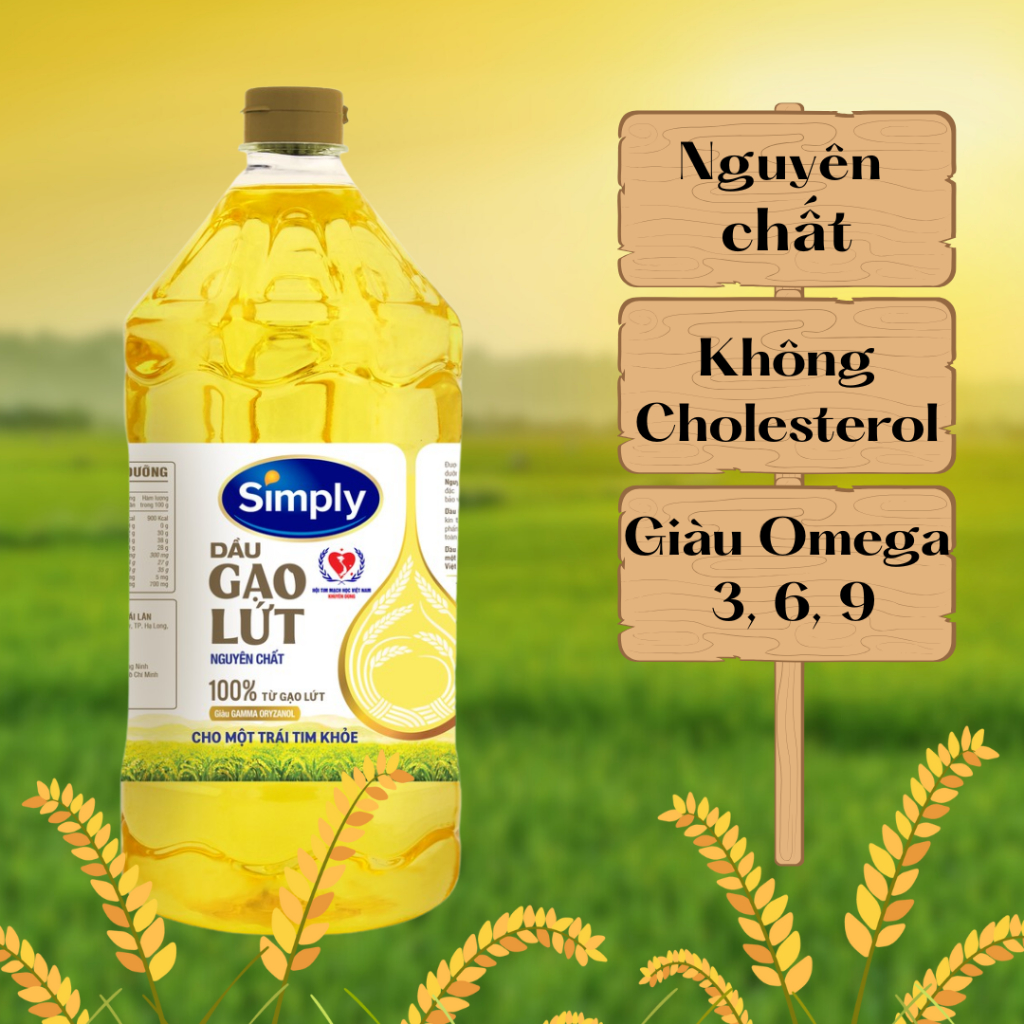 Dầu ăn Simply 1L / 2L | Dầu đậu nành & gạo lứt | Dầu ăn 1 lít 2 lít | Dầu chiên xào tốt cho tim mạch