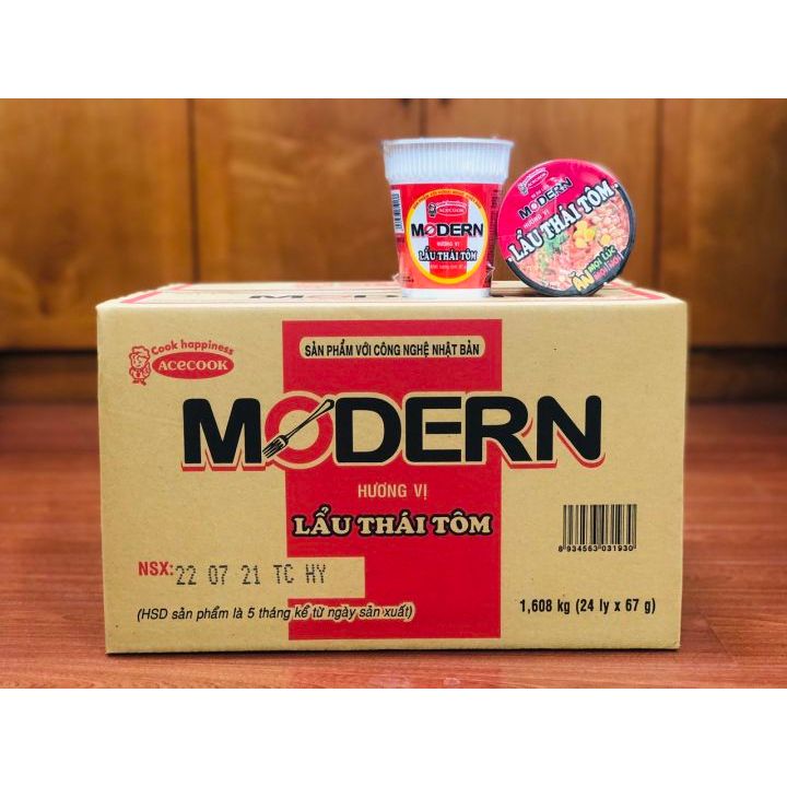 Mì Ly Modern Vị Lẩu Thái | Mì Tôm Ăn Liền Chua Cay | Thùng 24 Ly