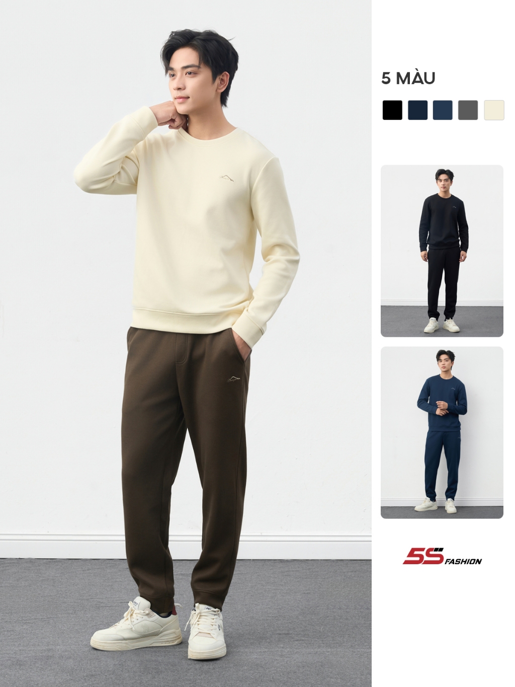 [GIÁ XẢ HÀNG] Quần Áo Nỉ Nam 5S FASHION Thêu Tinh Tế, Thiết Kế Basic Dễ Mặc 01-MBNI25013