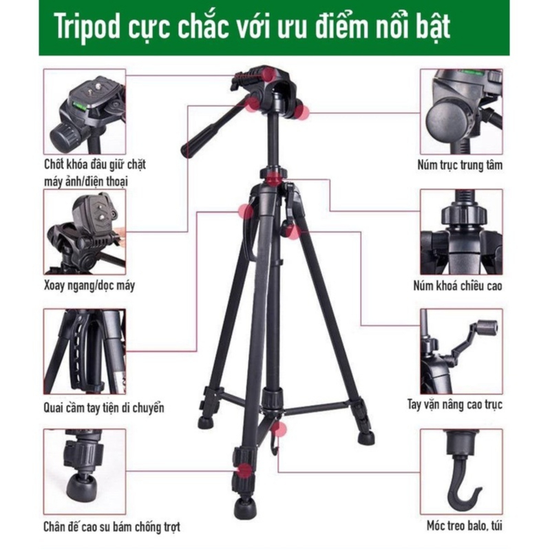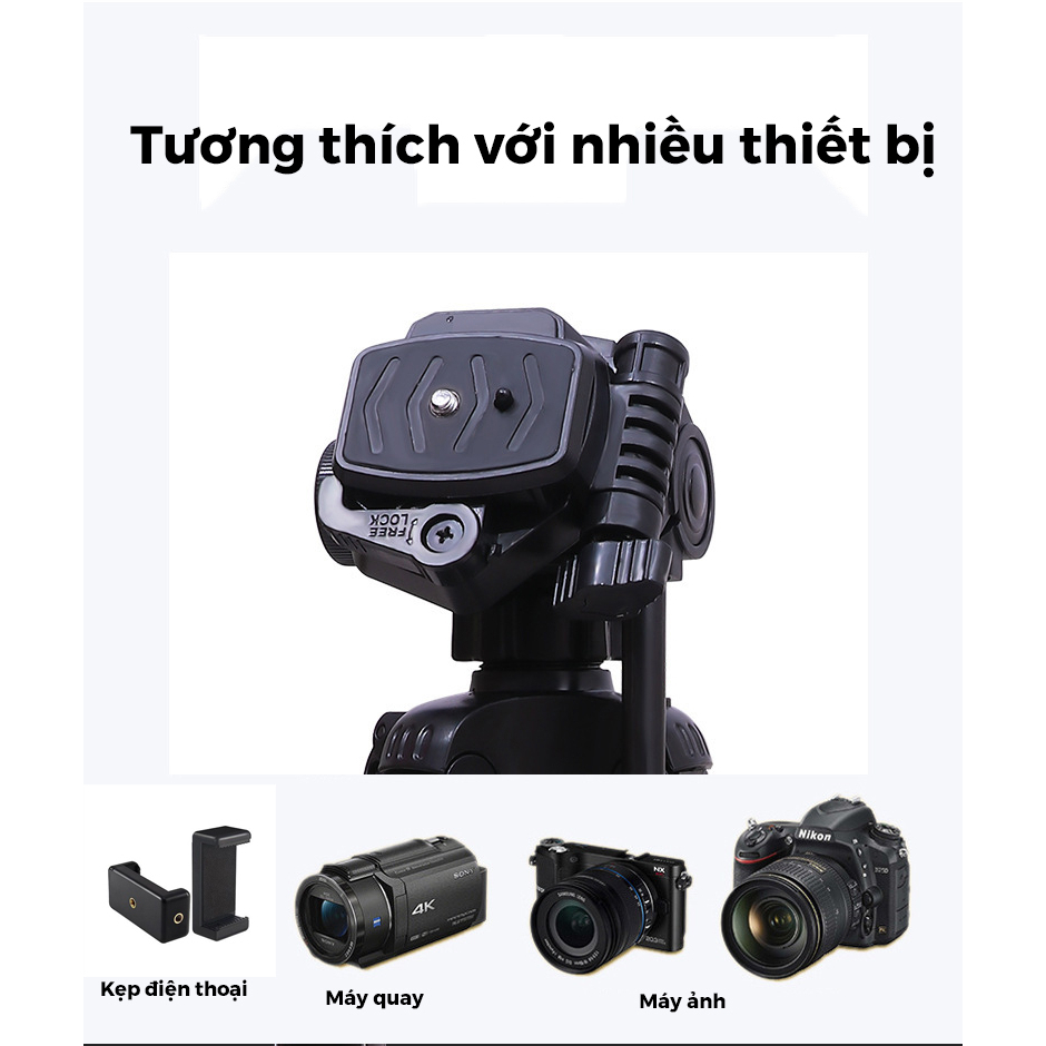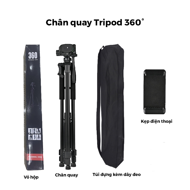 Chân Máy Ảnh T-3520/360, Tripods Điện Thoại, Khung Nhôm Cao Cấp, Chắc Chắn + Tặng Túi Đeo và Kẹp ĐT