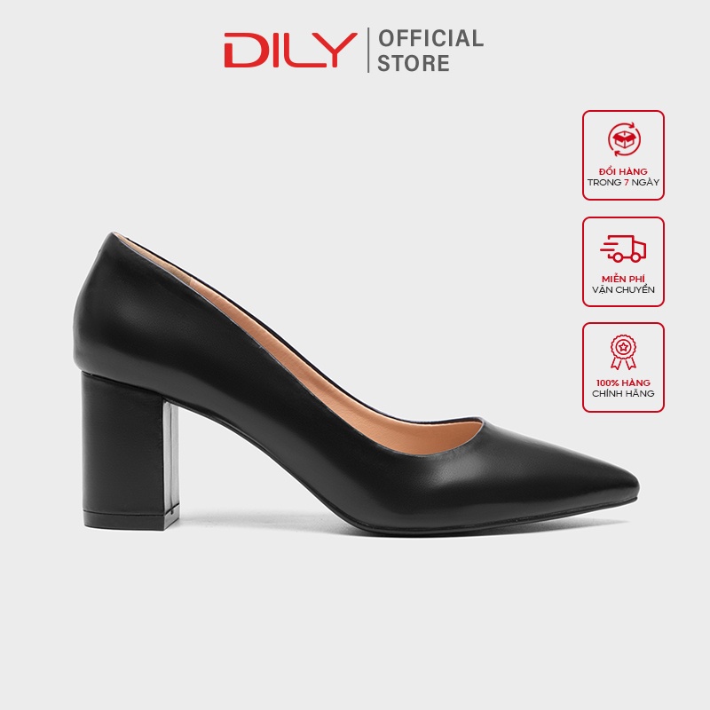Giày cao gót nữ bít mũi DILY mũi nhọn thời trang gót vuông basic cao 6.5cm_ AA0265