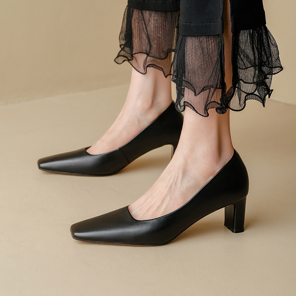 Giày cao gót bít mũi nữ DILY mũi vuông thời trang kiểu dáng basic gót trụ cao 6cm_ AA0354