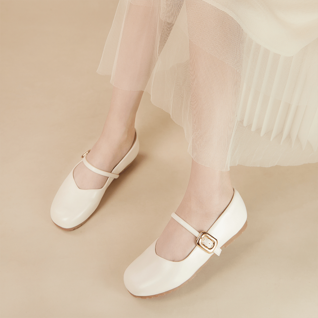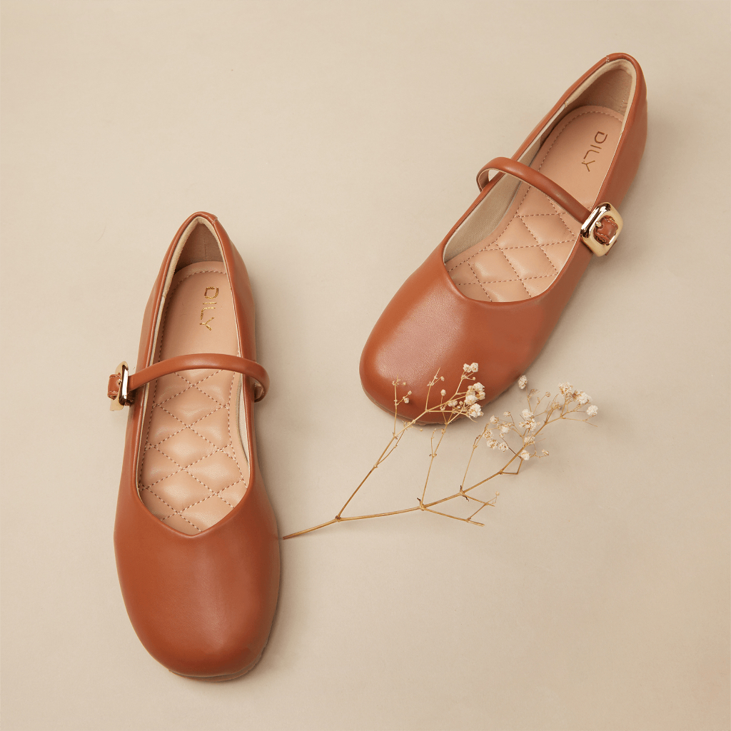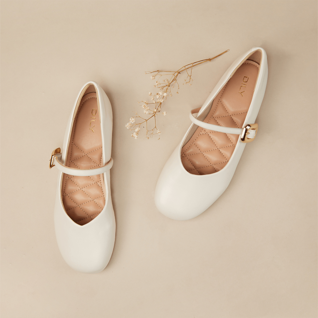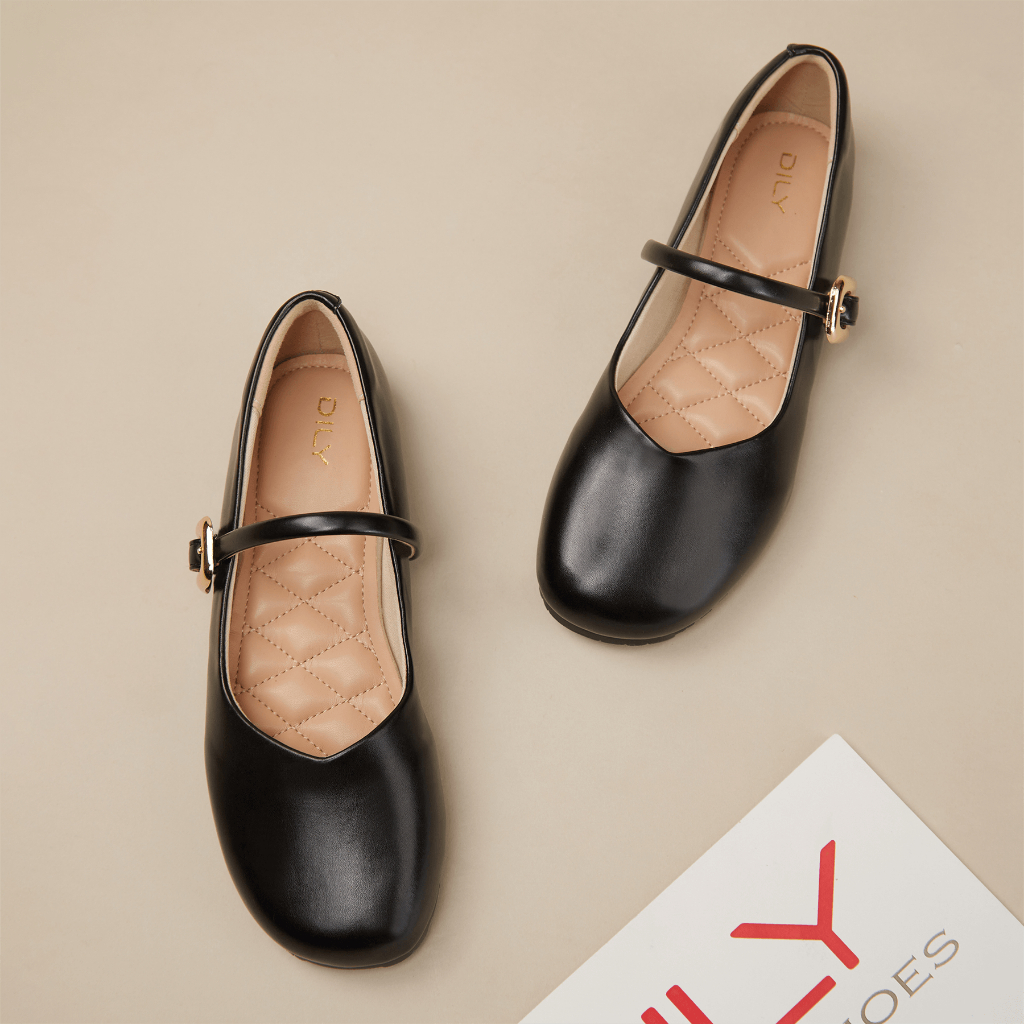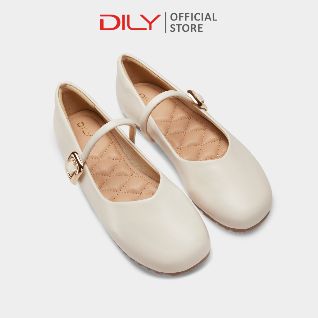 Giày búp bê nữ DILY mũi tròn quai cài khoá kim loại sang trọng cao 1cm AA0438