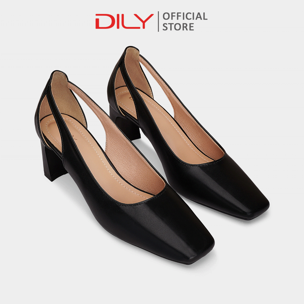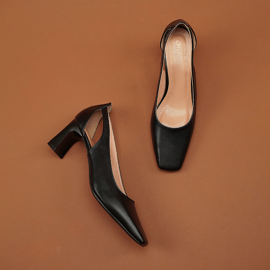 Giày cao gót nữ DILY mũi vuông thời trang kiểu dáng basic, giày bít thiết kế cut-out gót trụ cao 6cm AA0457