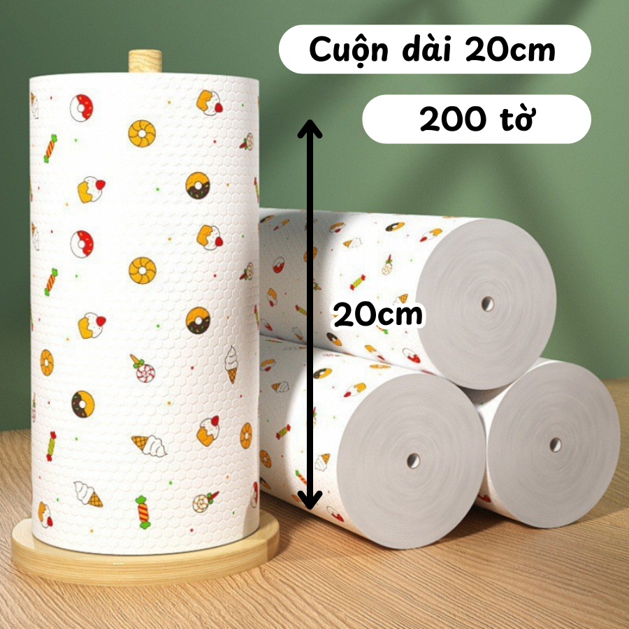 [CUỘN TO] Cuộn 200 Khăn Giấy Vải Lau Đa Năng, Khăn Lau Bếp, Siêu Thấm Hút Có Thể Tái Sử Dụng