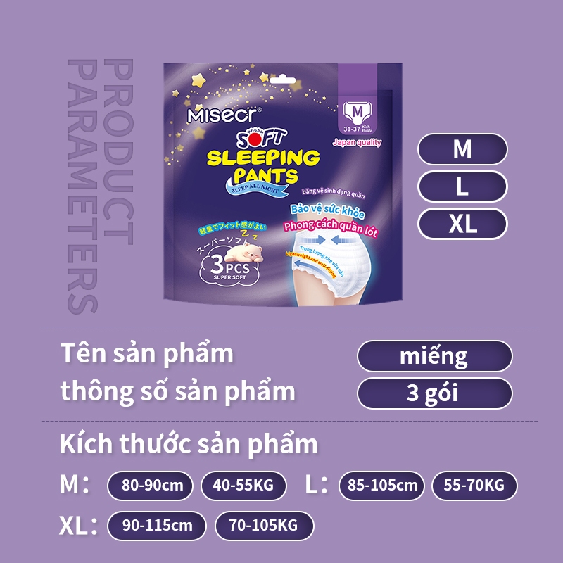 MISECR 1 gói 3 miếng băng vệ sinh phụ nữ Siêu mỏng và thoáng khí băng vệ sinh đồ lót