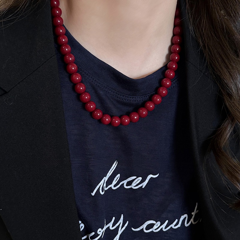 Vòng cổ mặt dây chuyền hạt trung chuyển màu đỏ Ancora dành cho nữ thiết kế thích hợp dây chuyền áo len retro cảm giác cao cấp phụ kiện mùa thu đông