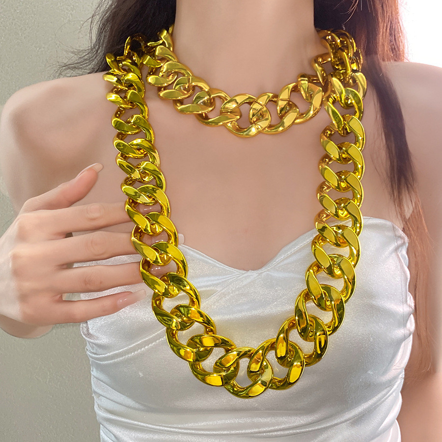 Hip-hop phóng đại, dây chuyền vàng nhựa lớn, phụ kiện thời trang cho nam