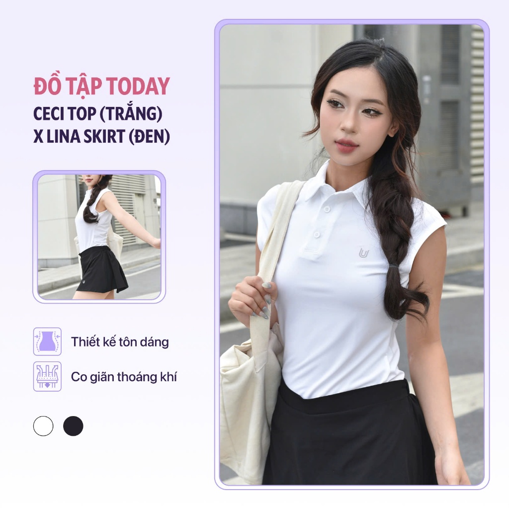 Set bộ đồ thể thao nữ áo polo Ceci Top trắng mix chân váy Lina Skirt đen Dotaptoday
