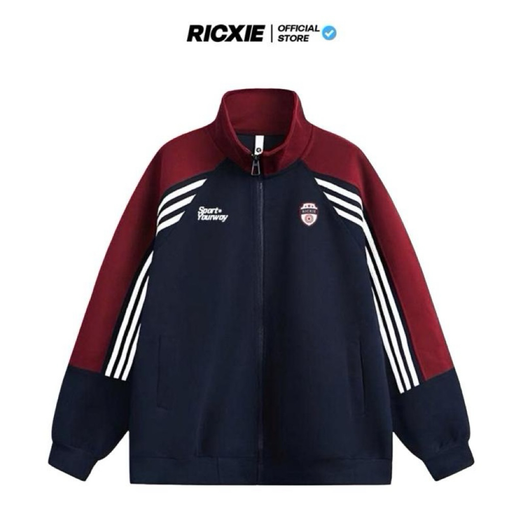 Áo Khoác Ricxie Zip Thể Thao Vải Nỉ 2 Da Cổ Cao Kẻ Sọc Streetwear