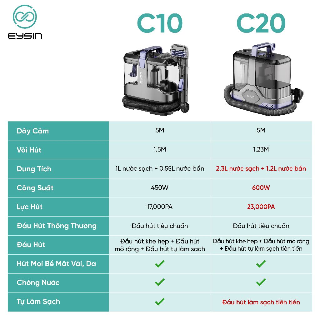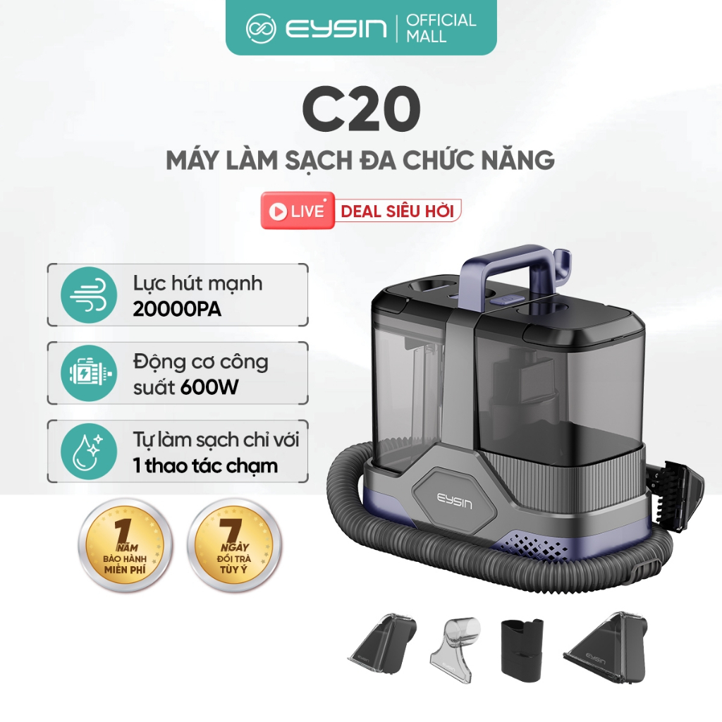[K] Máy hút giặt EYSIN C20 lực hút mạnh 20000PA đa năng hút ướt và khô, tự làm sạch, khử trùng giường nệm và sofa