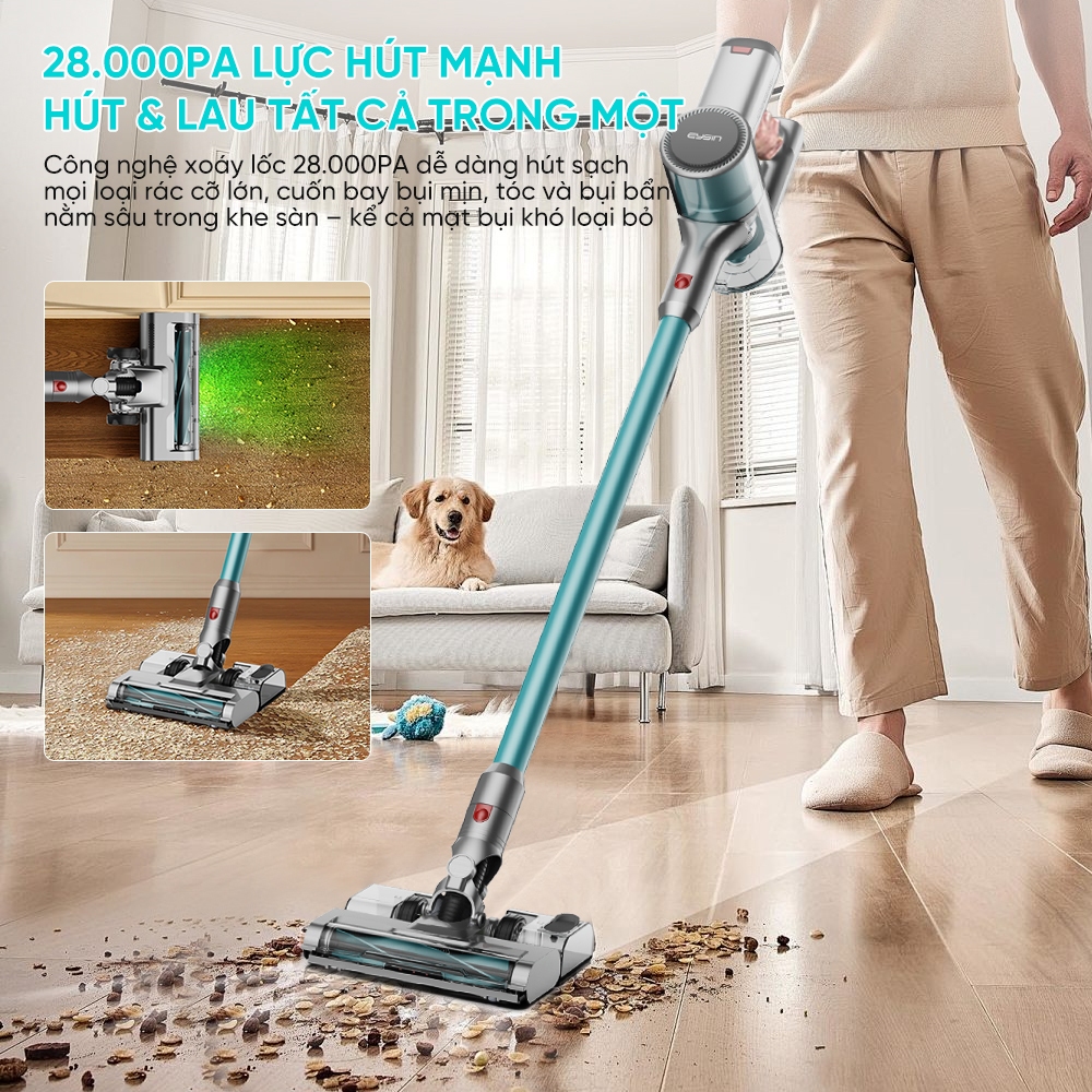 [K] Máy hút bụi không dây EYSIN X3MAX lực hút mạnh 28000Pa Lõi lọc HEPA Đèn xanh thông minh phát hiện bụi mịn tiện lợi