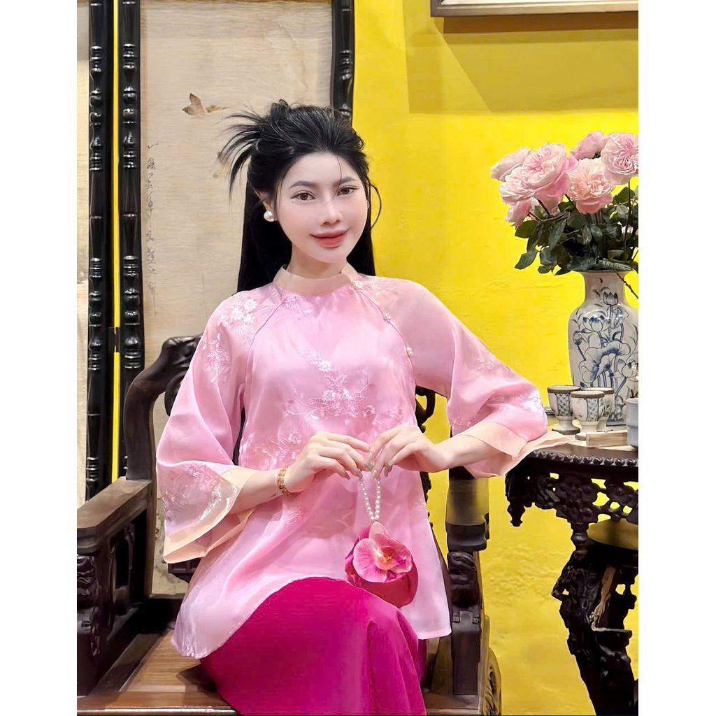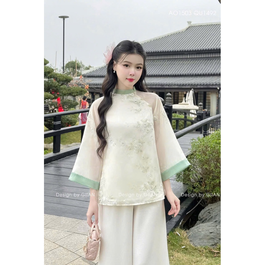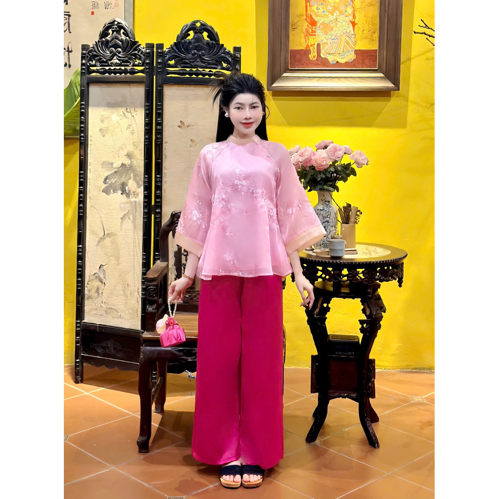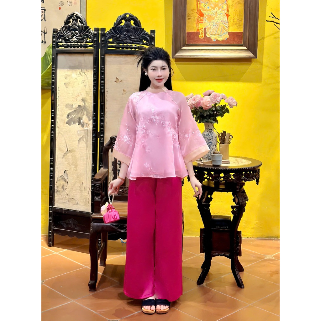 Pháp phục- đồ lam đi chùa Quỳnh Anh- Tơ lụa thêu hoa cúc giọt nước thanh lịch QA95