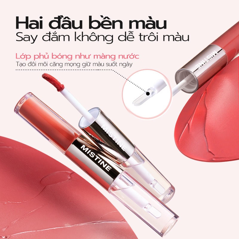 MISTINE Hai kiểu trang điểm môi Mềm mịn mỏng nhẹ Khóa màu bền lâu Không dễ dính cốc 3g