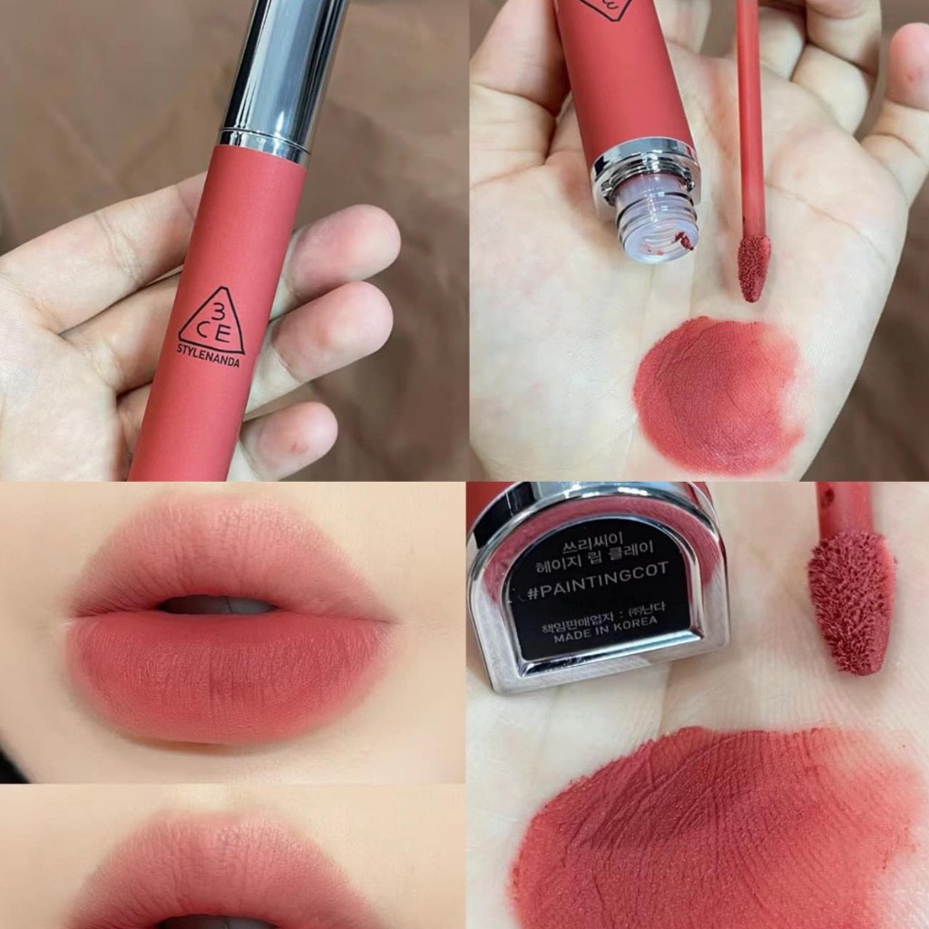 Son Kem Lì mịn môi 3CE Hazy Lip Clay 4g Vỏ Nắp Bạc Full Màu
