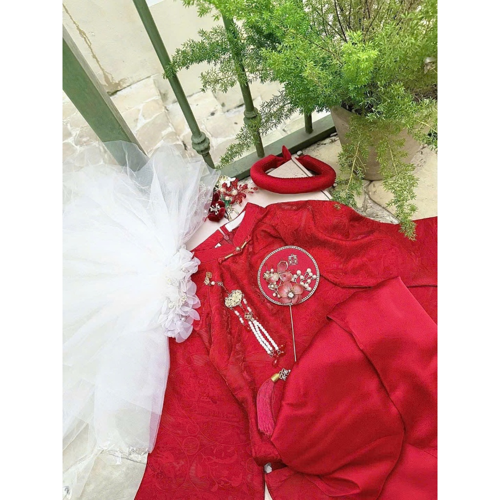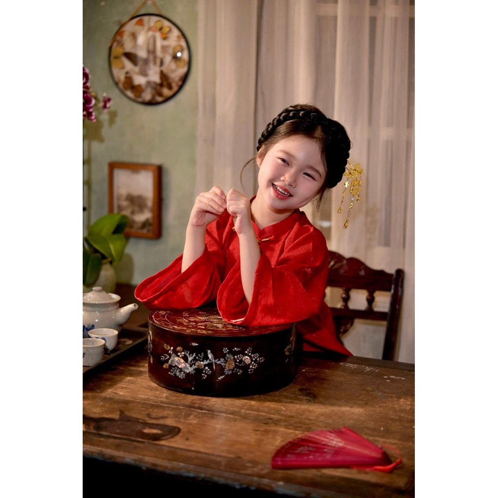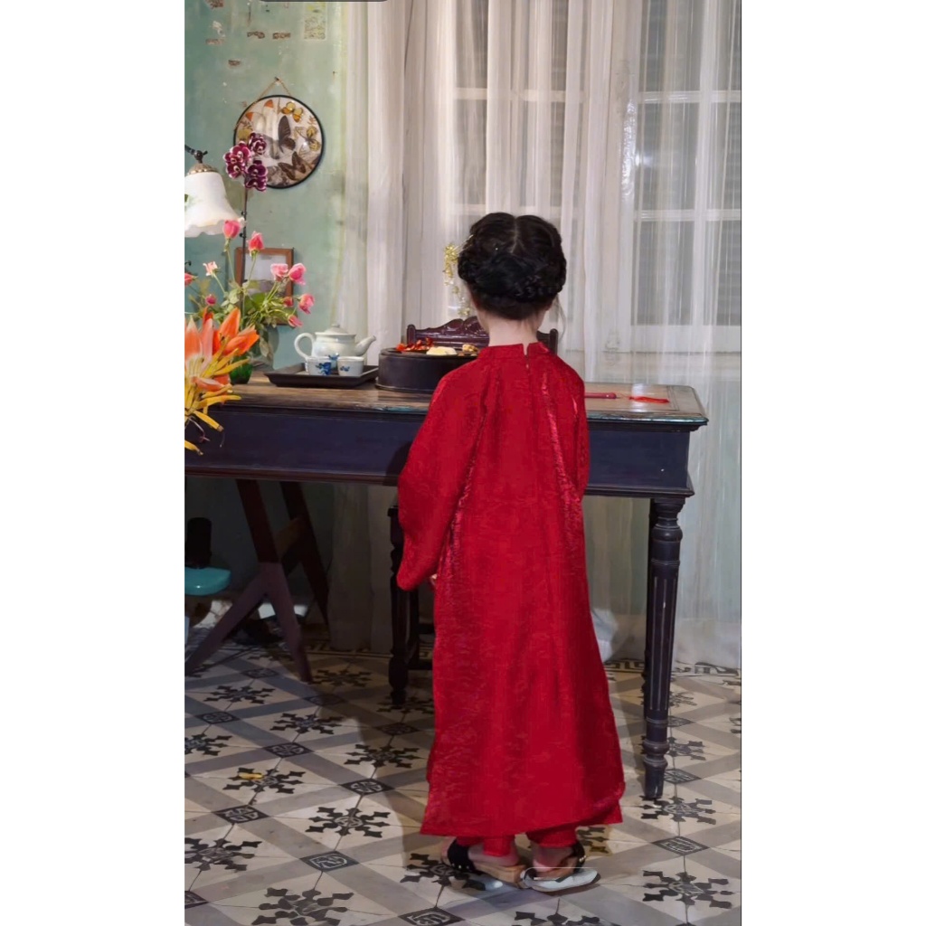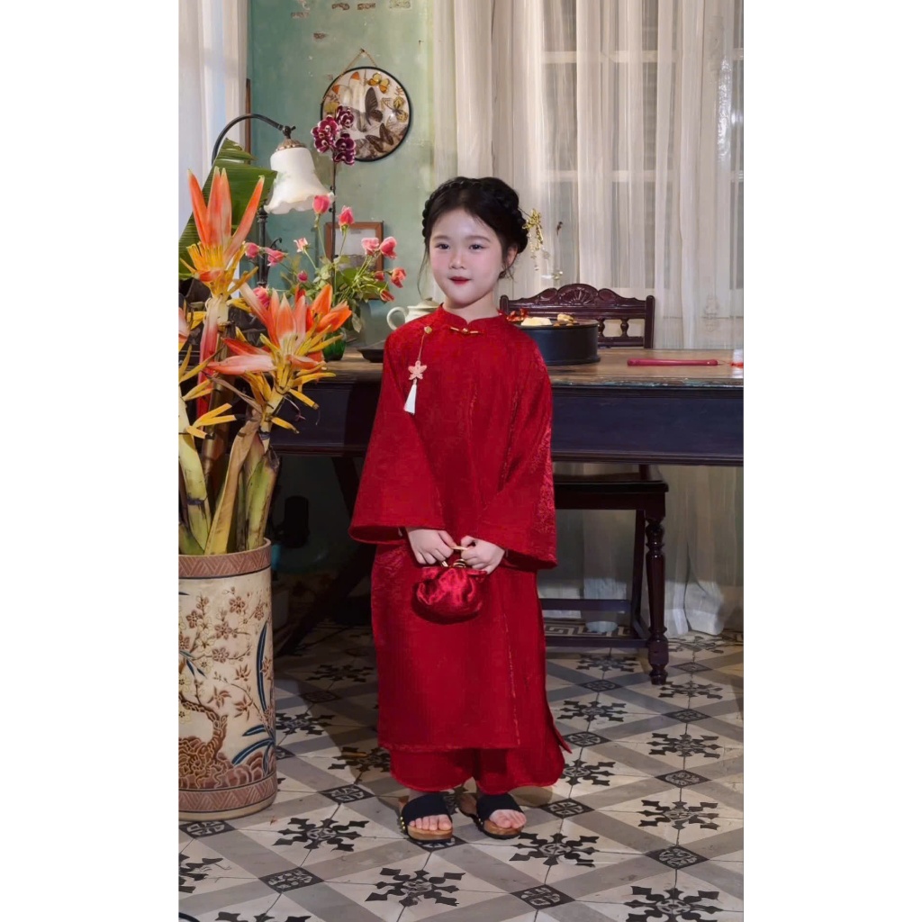 Bộ áo dài bé gái CÁT TƯỜNG, áo dài Tết, áo dài cách tân cho bé Tết 2026 - màu đỏ - áo dài Mẹ&bé - MB25.833