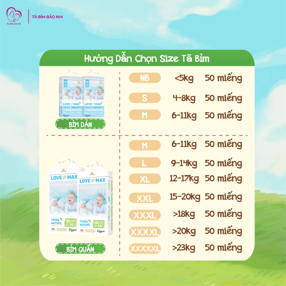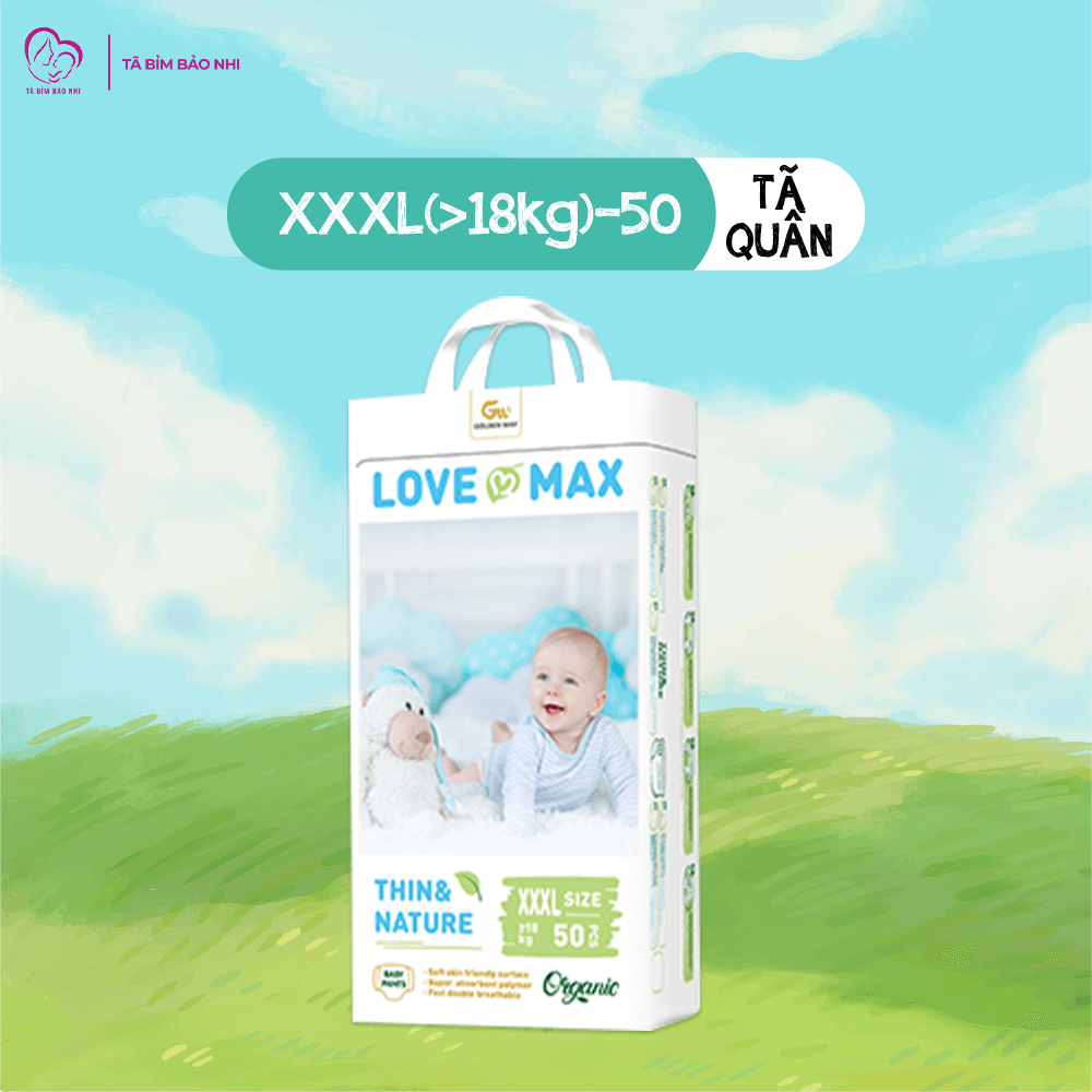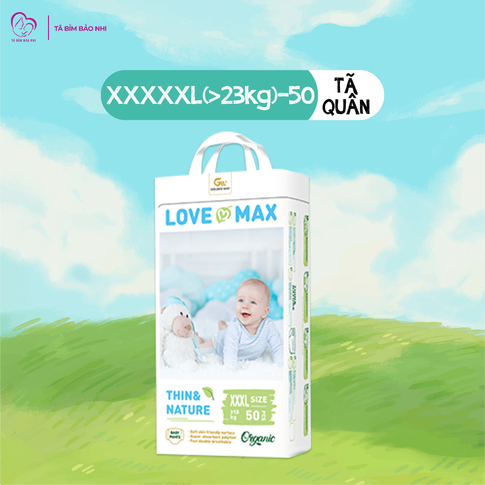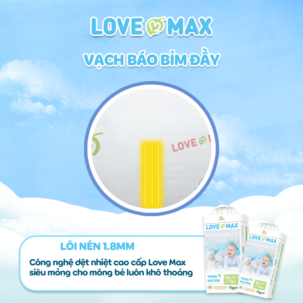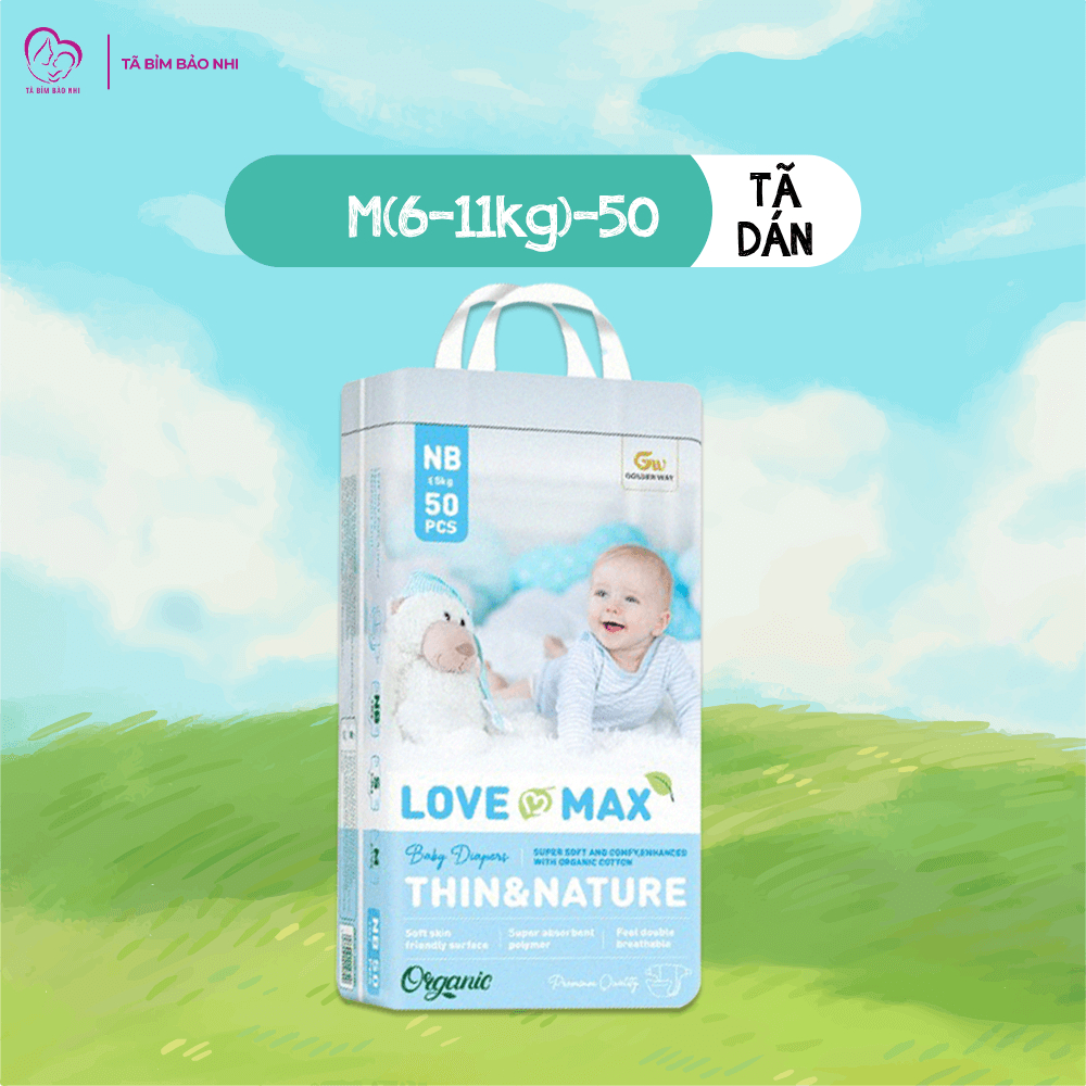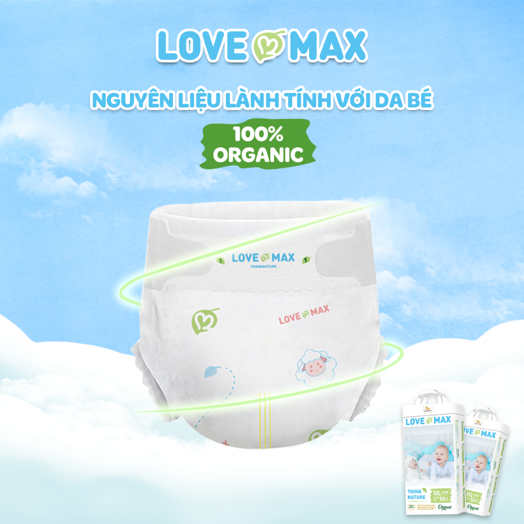 Tã Bỉm LOVE MAX Organic Chính Hãng, Bỉm Dán /Quần Mỏng Nhẹ Cho Bé Full Size
