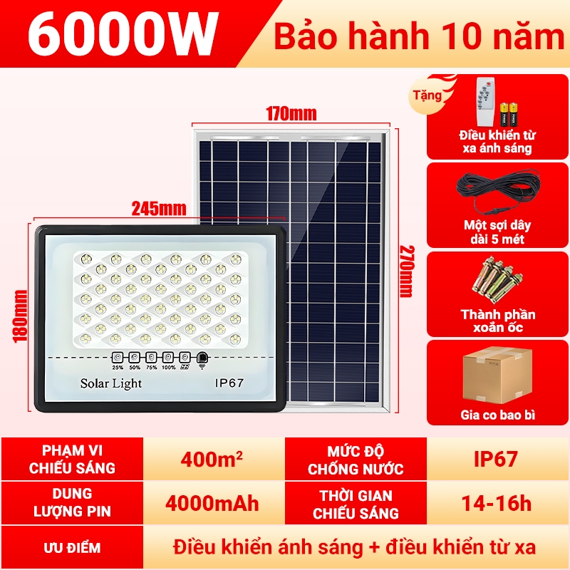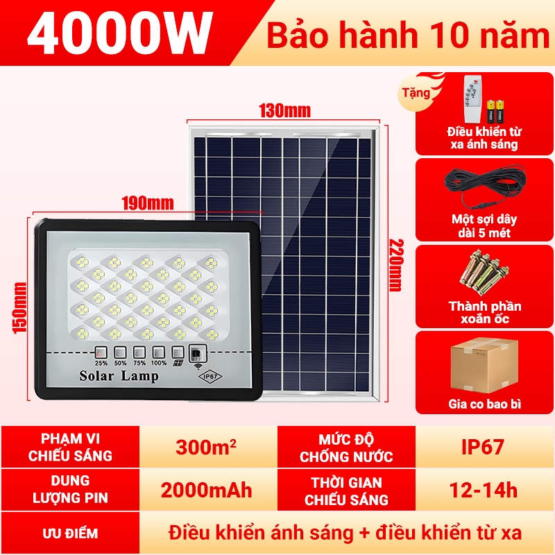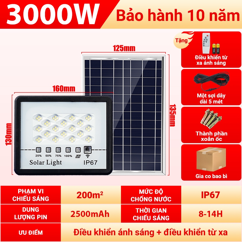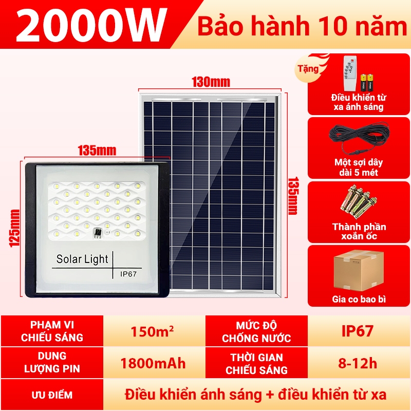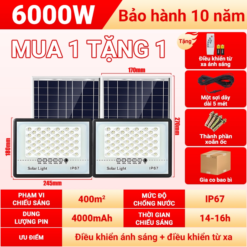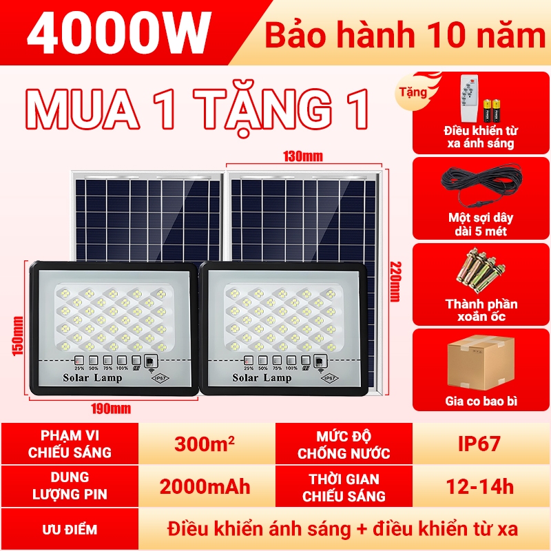 Mua 1 tặng 1 Đèn năng lượng mặt trời 1000W Đèn ngủ Tự động sáng khi trời tối chống nước Chống sét