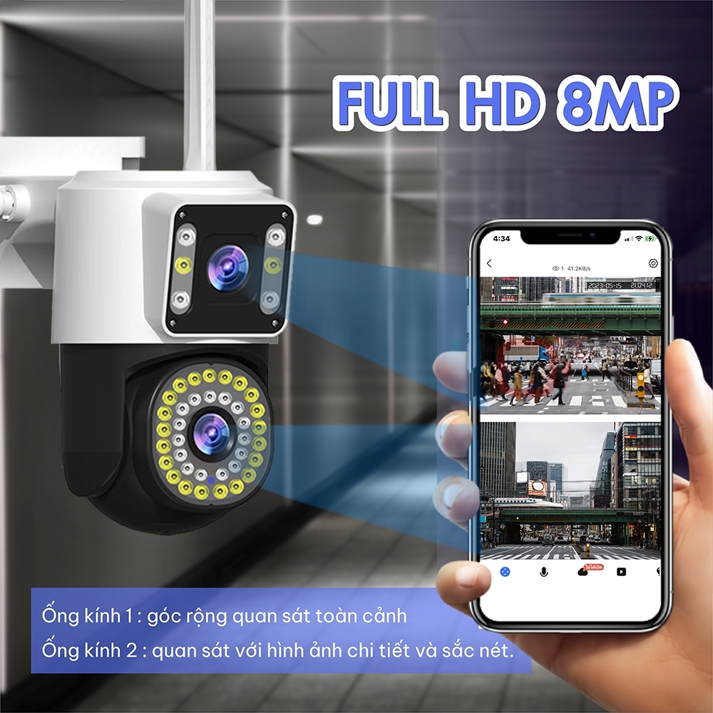 Camera Wifi V360Pro 2mắt Phong Nhãn- 12.0mpx- siêu nét góc quay rộng,ban đêm xem có màu,đàm thoại 2 chiều rõ nét