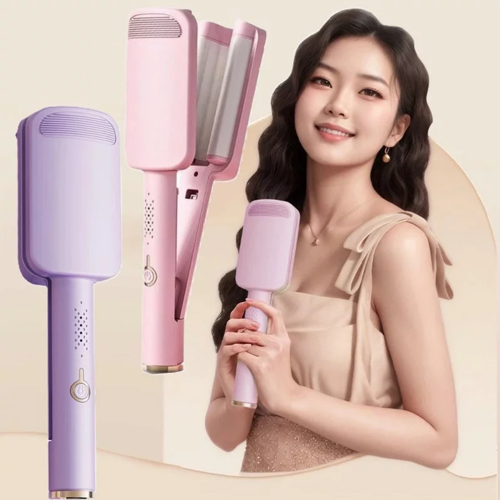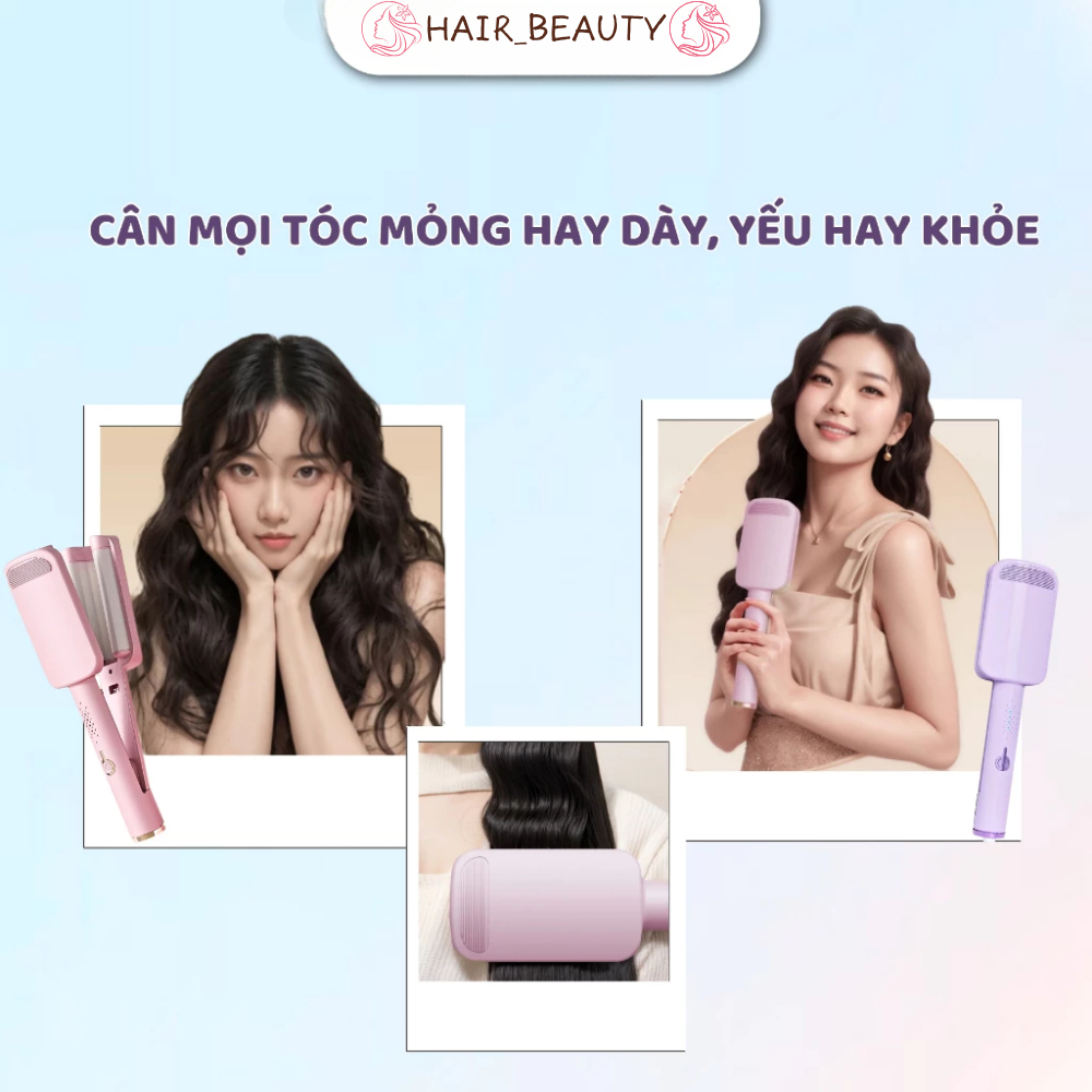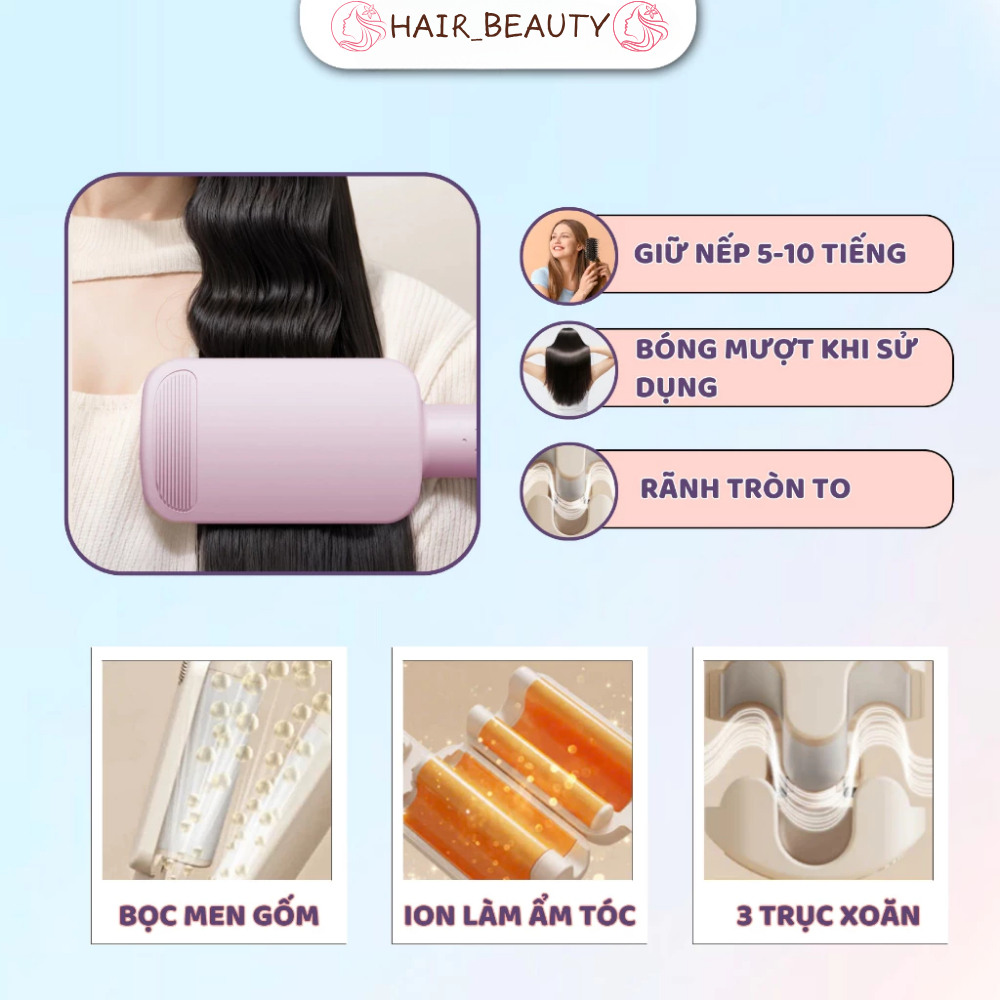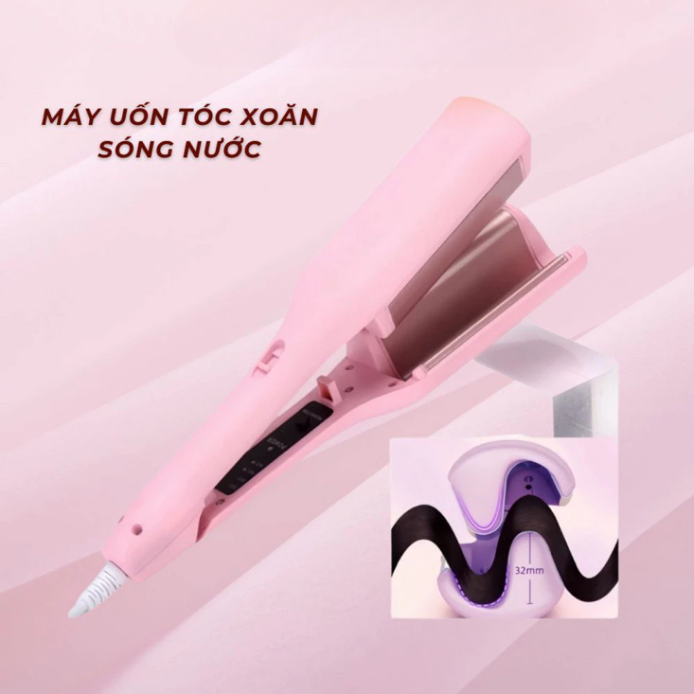 Máy Uốn Tóc Xoăn Sóng Nước Hippie 3 Trục 32mm Chât Liệu Gốm Sứ Ceramic Cao Cấp Tích Hợp Ion Bảo Vệ Tóc