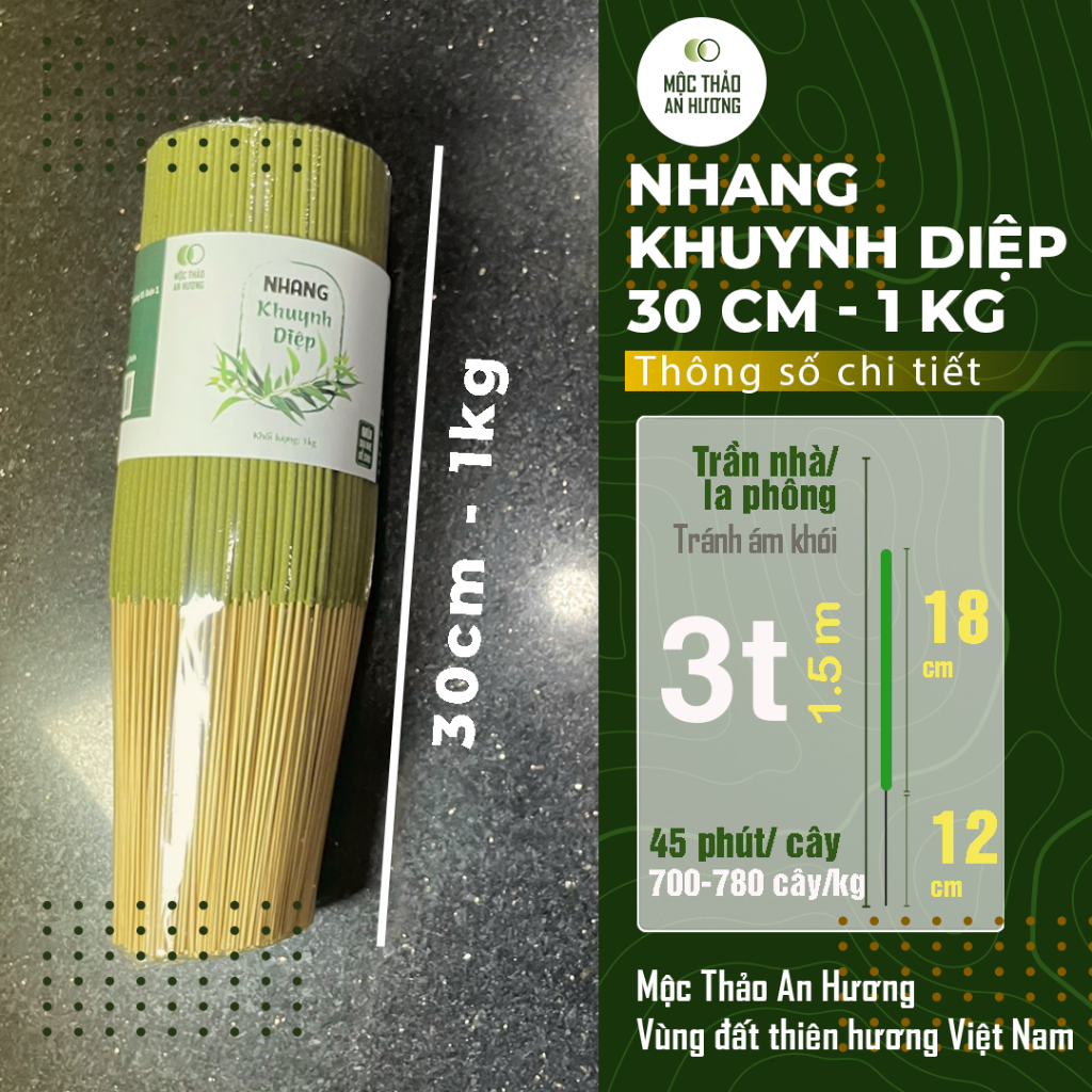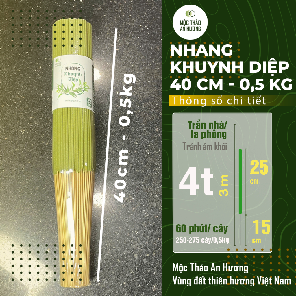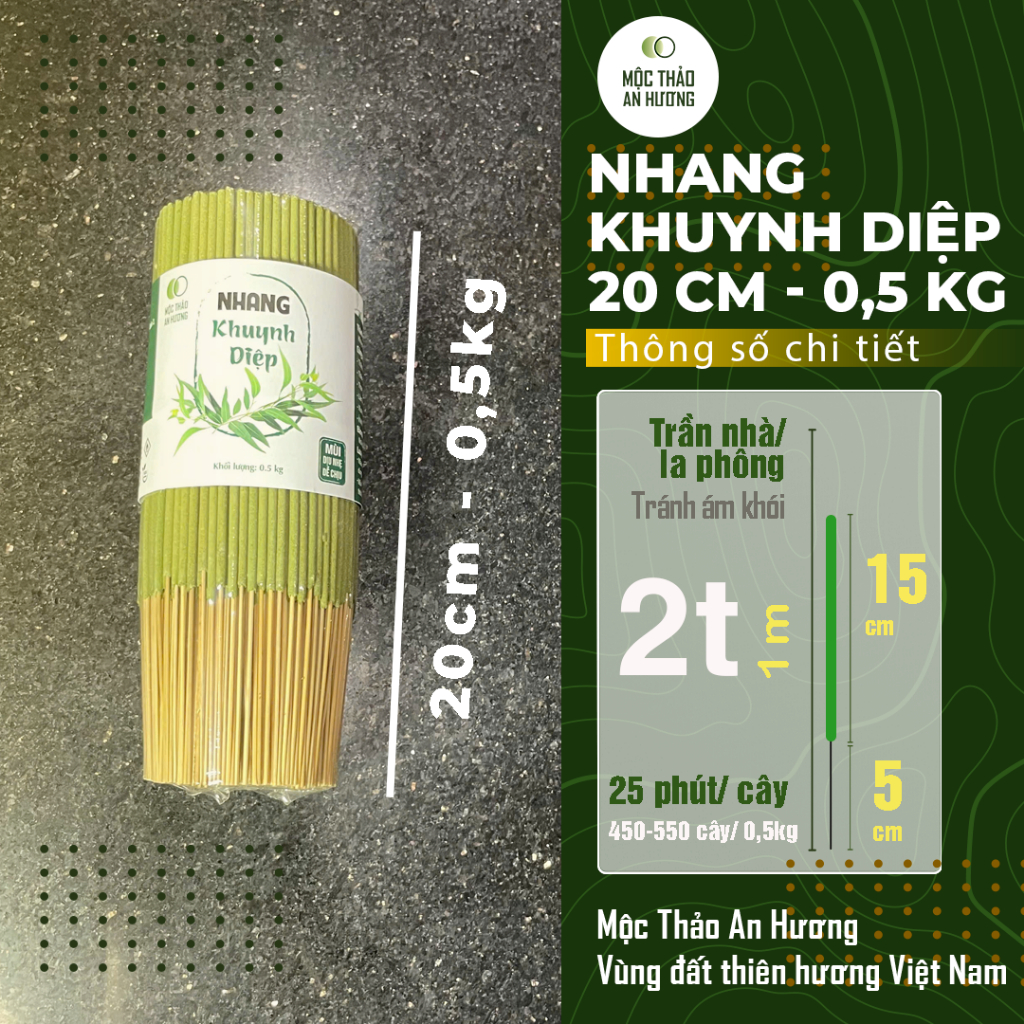 Nhang khuynh diệp thơm dịu, ít khói, không hóa chất Mộc Thảo An Hương 20 cm, 30 cm, 40 cm