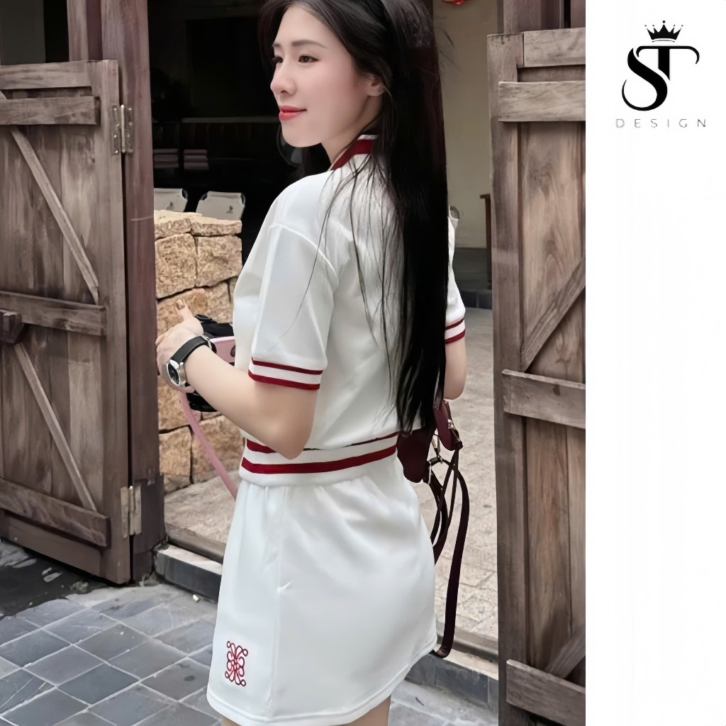 Set thể thao khóa kéo + chân váy dáng A ( có logo thêu đỏ) - ST Design - S06