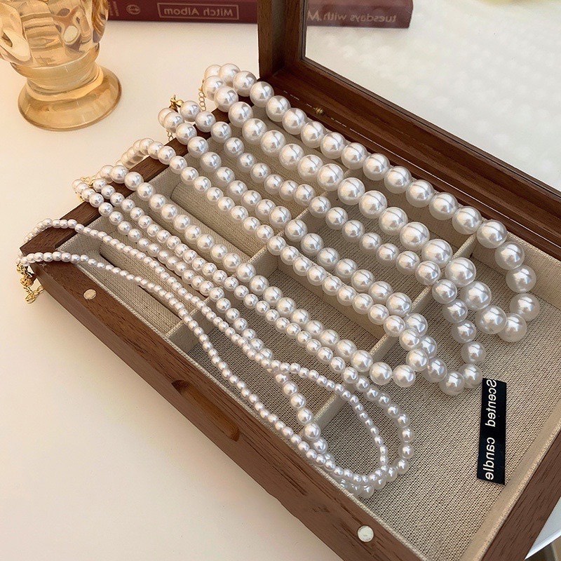 Vòng Cổ Ngọc Trai Nhân Tạo, phụ kiện áo dài, Trang sức cho nữ kiểu CHOKER (Có Móc Khóa - Sz 7mm )