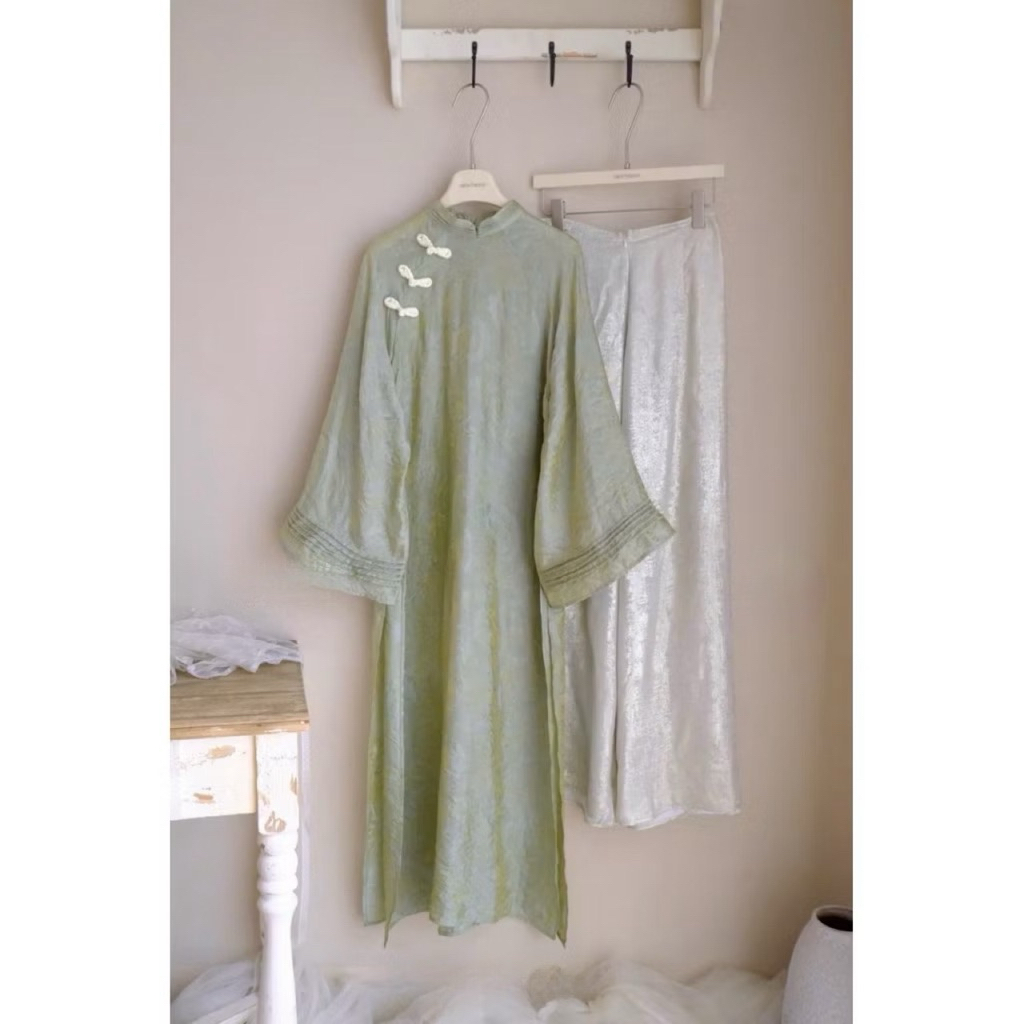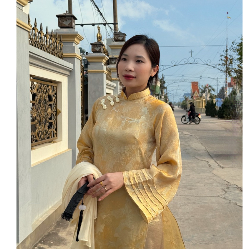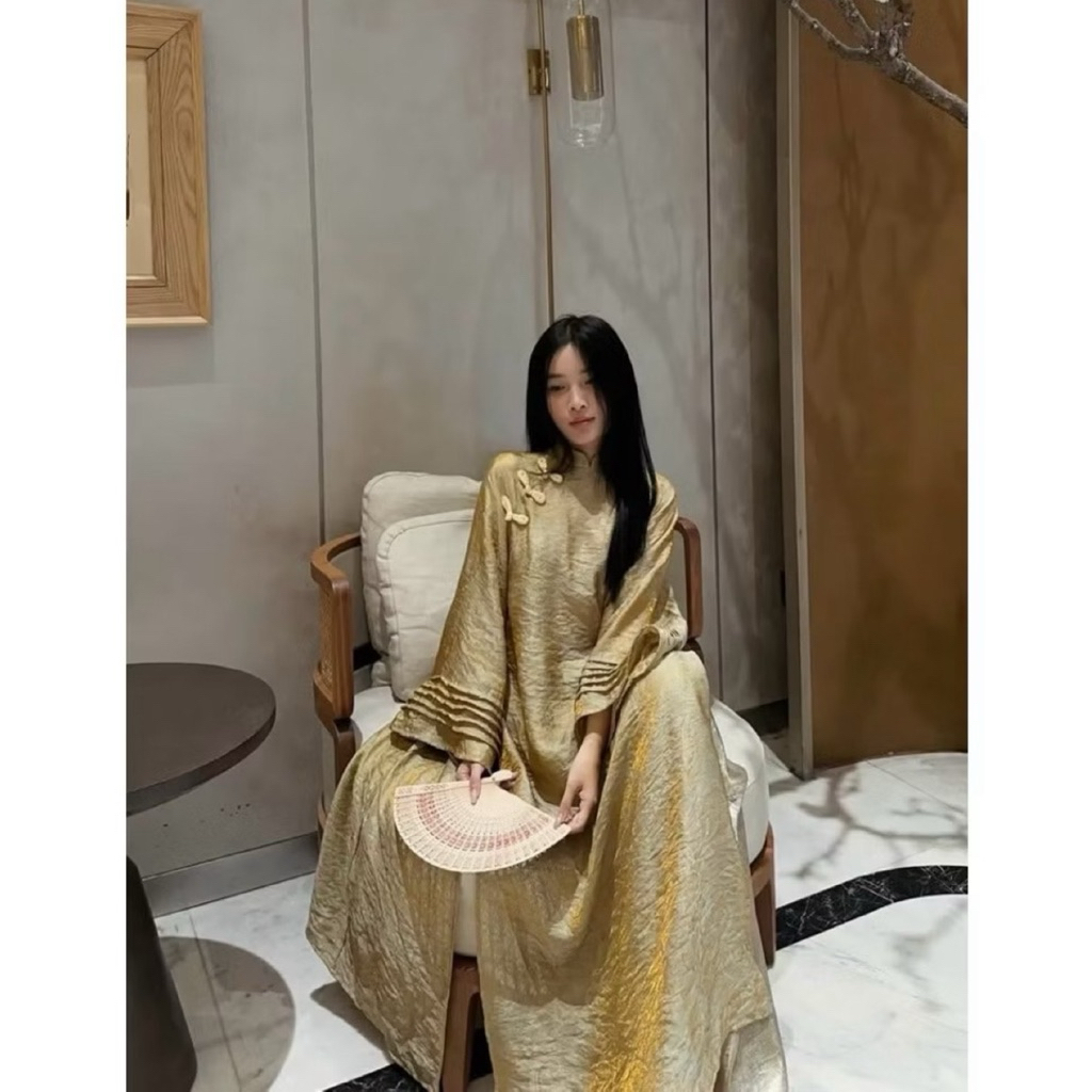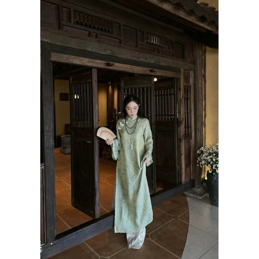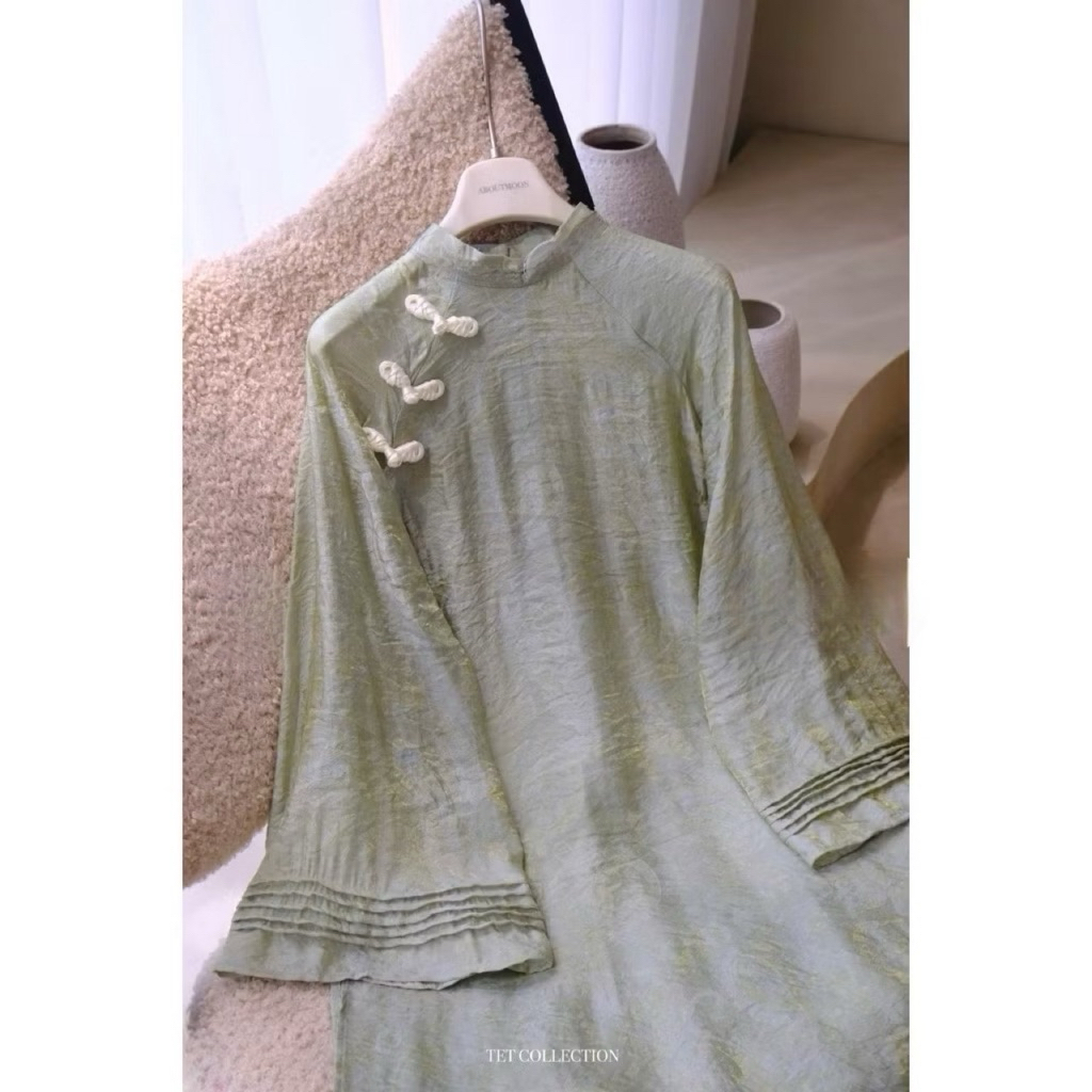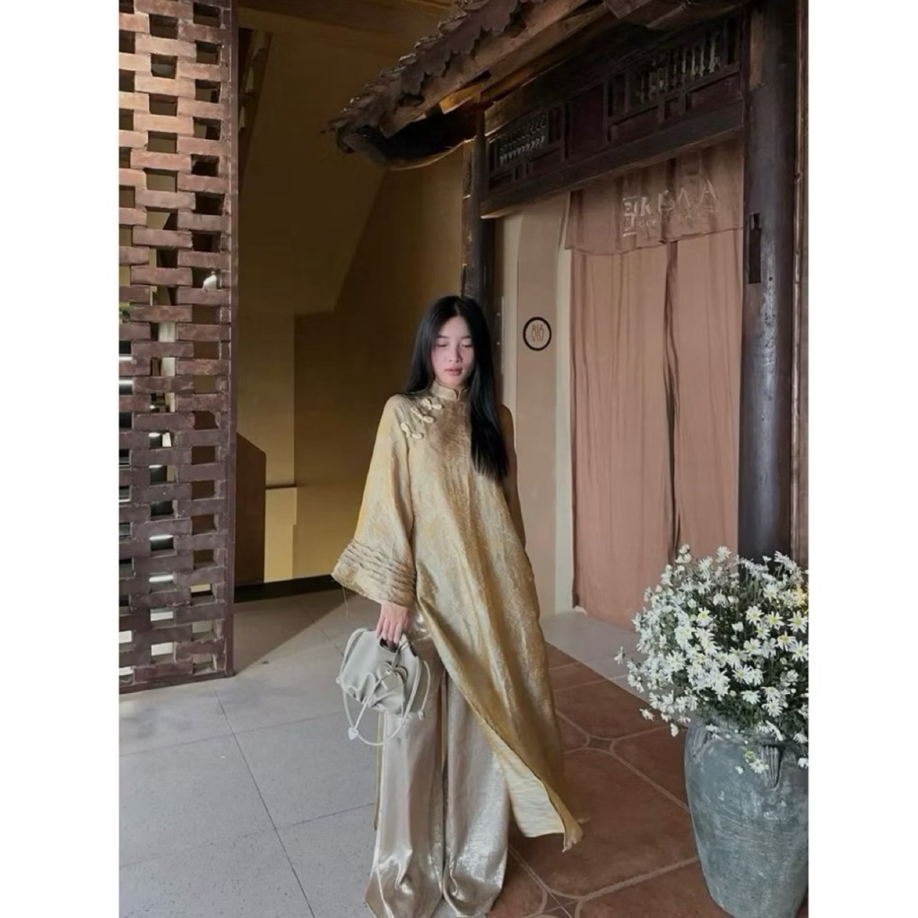 Áo Dài “ Túc Hy ” Gấm Tằm Ánh Kim Dáng Suông 2 Tà, Áo Dài Tết Cách Tân Mẫu Mới 2026 Mix Quần Ánh Kim