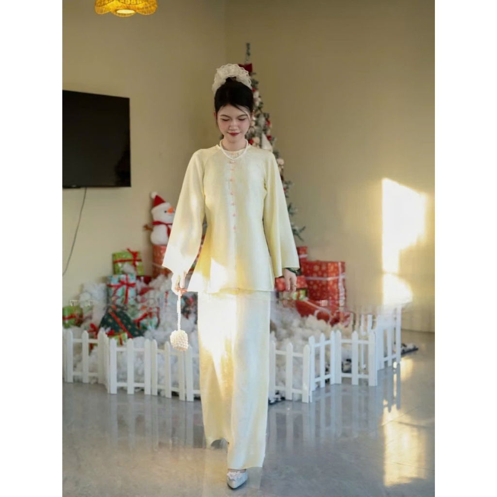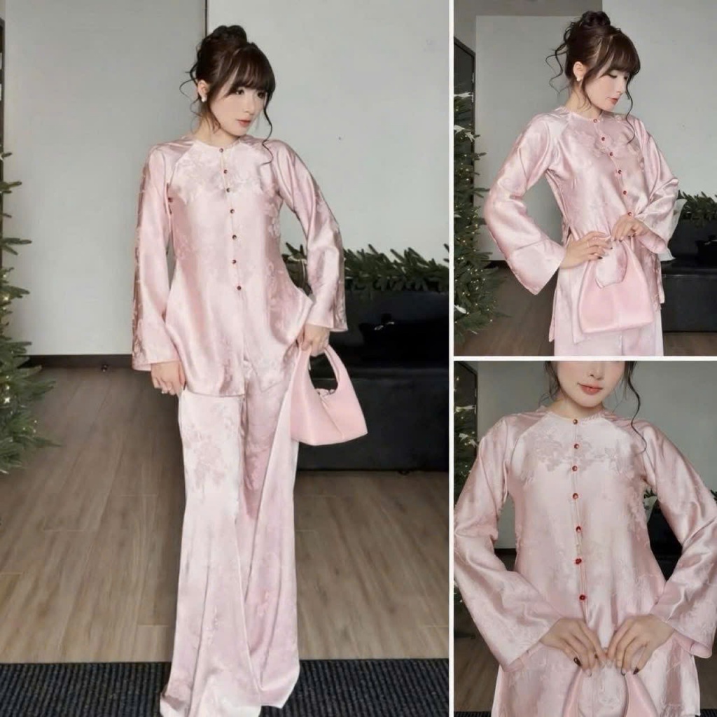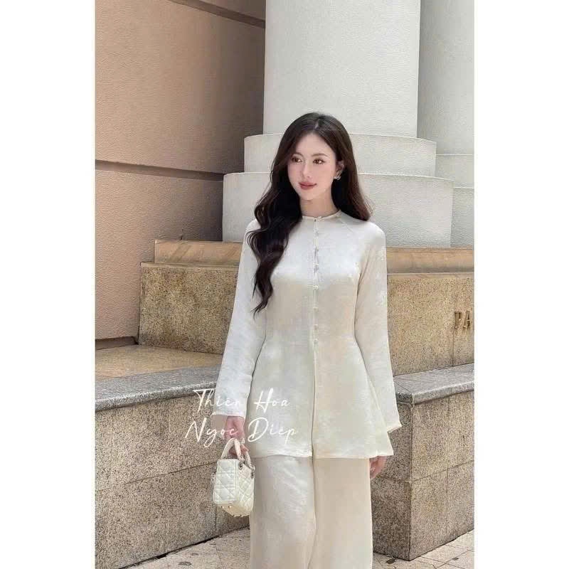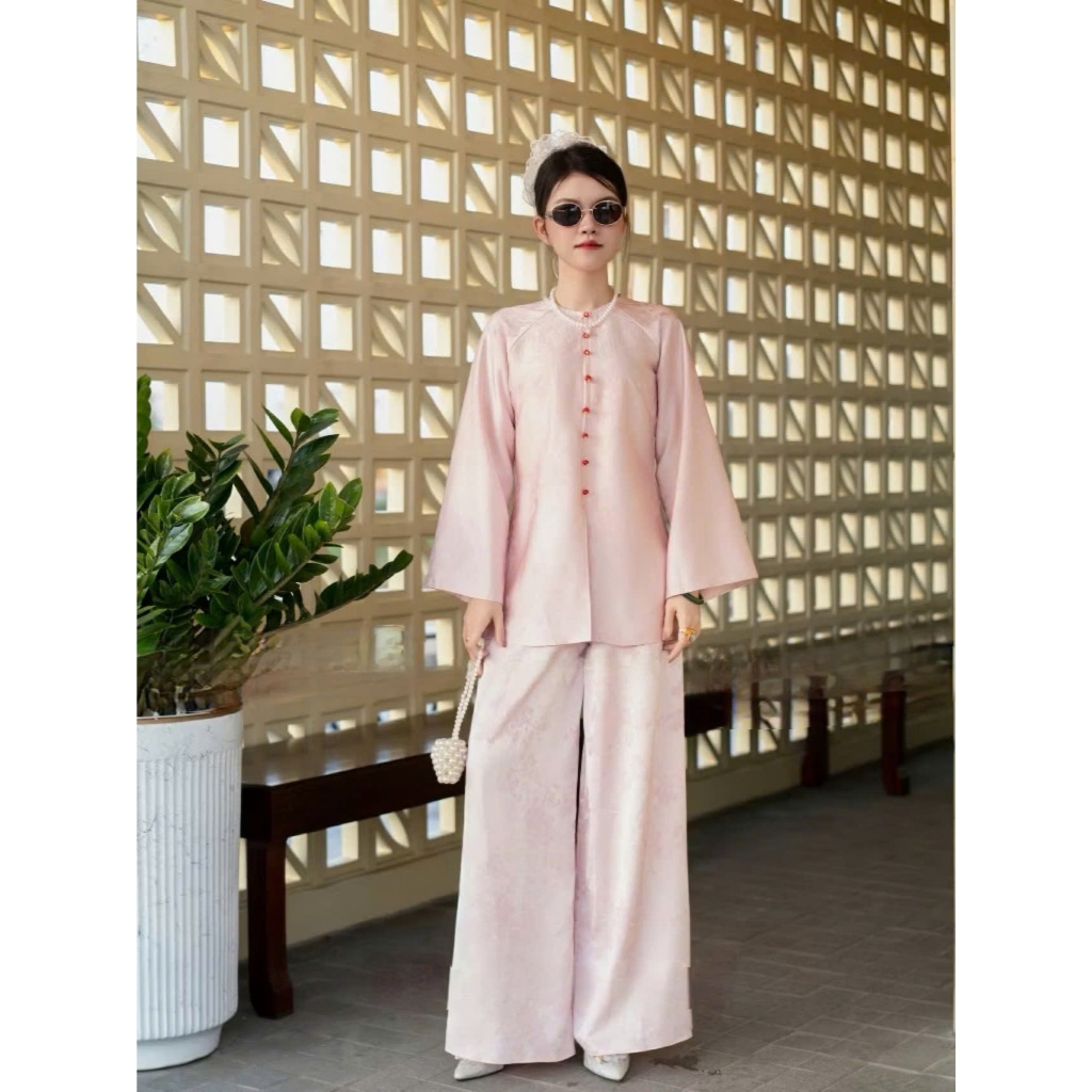 Set Đồ Bộ Pháp Phục, Đồ Lam Đi Lễ Chùa Dành Cho Nữ Tay Loe Cổ Tròn Đính Cúc Thanh Lịch