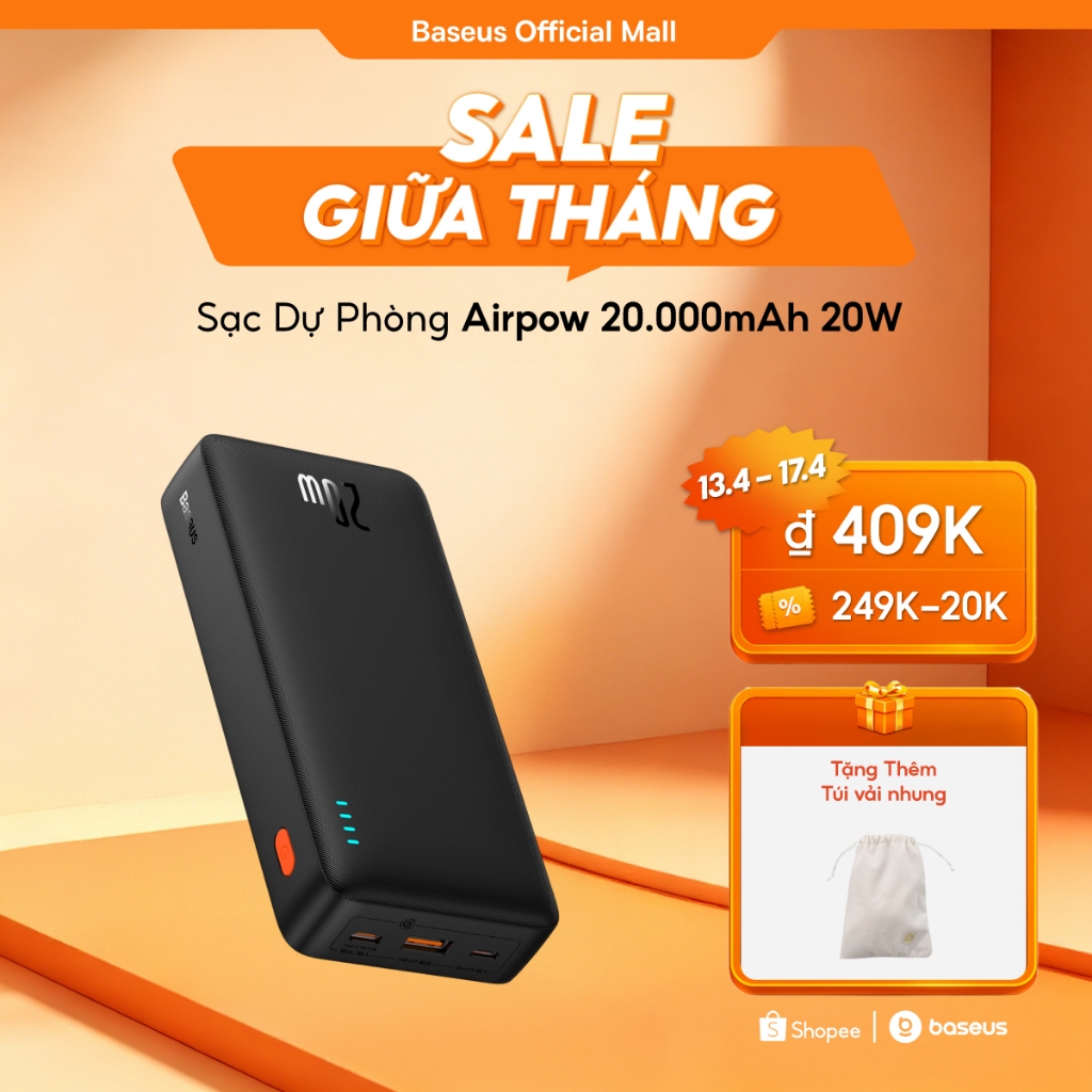 Sạc dự phòng Airpow BASEUS có sạc nhanh 20W 20000mah thích hợp cho phone 15 / 14 / 13 / 12 xiaomi