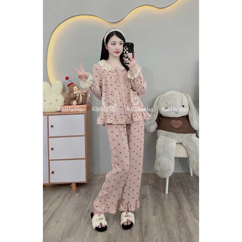Bộ bầu bộ sau sinh - Bộ Đũi Mềm Mẫu Mới Cổ Ren Viền Bèo Xinh - 10 Màu