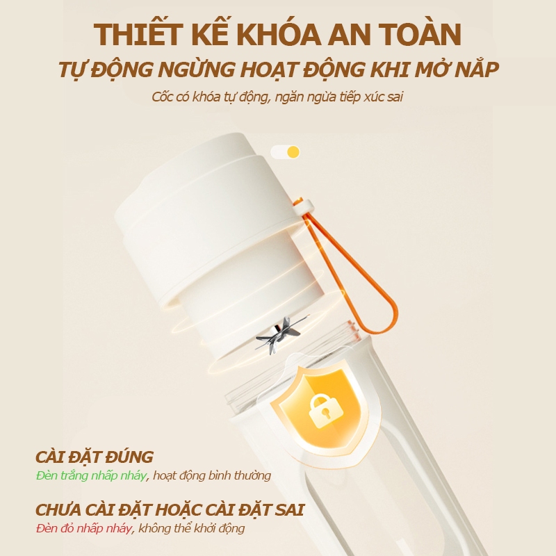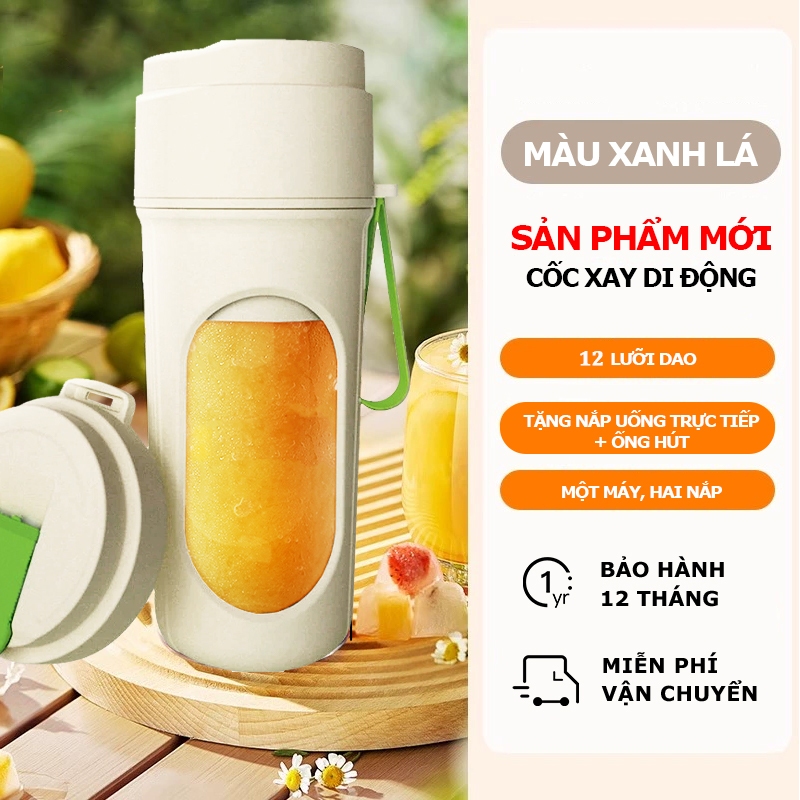 Máy Xay Sinh Tố Máy Xay Cầm Tay 12 Lưỡi Dao Dung Tích Lớn 340 ML, Nắp Đôi
