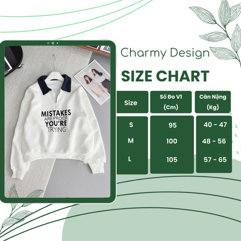 Áo Nỉ Nữ Mistake Dài Tay Cổ Sơ Mi Khóa Kéo Nữ Tính Trẻ Trung, Áo Sweater Nữ Vải Nỉ Dày Dặn Thời Trang Charmy