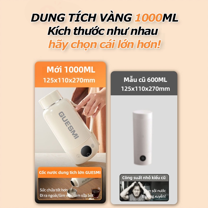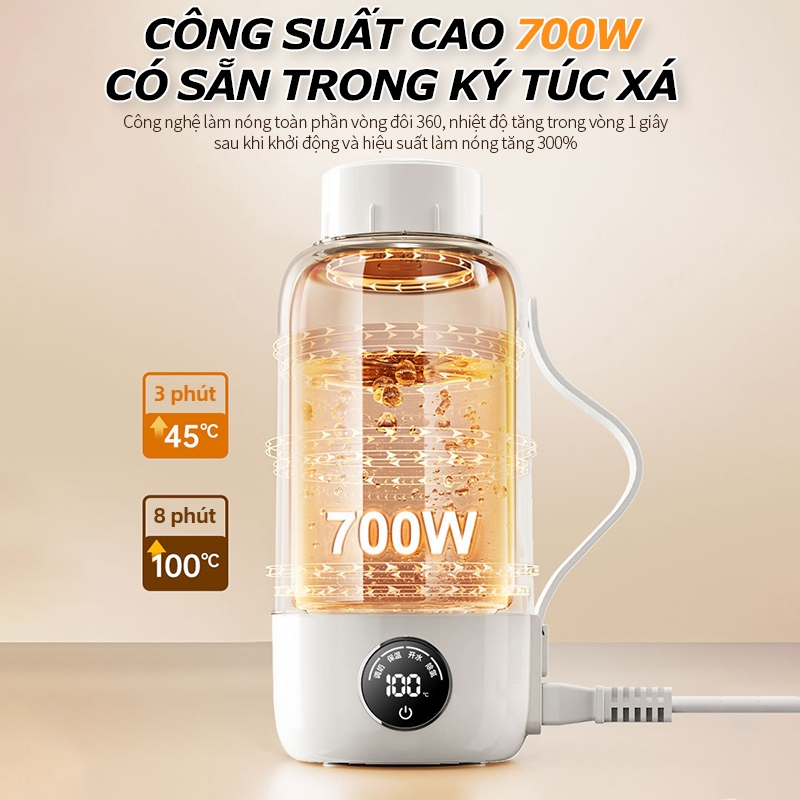ONR - Ấm Đun Nước Điện Mini 1000ML, Đun Sôi Nước Trong 3 Phút, Chống Tràn Thông Minh