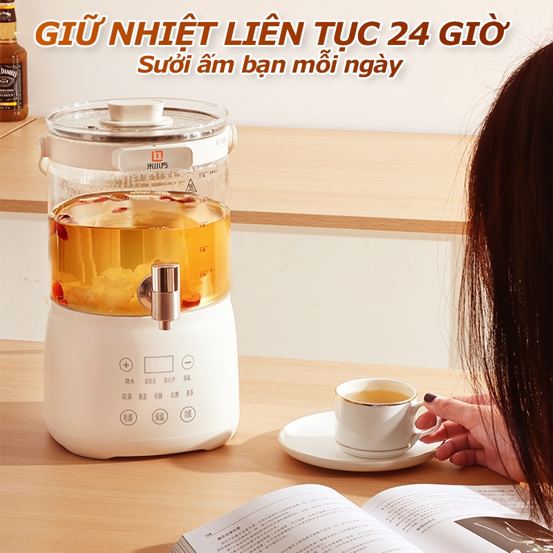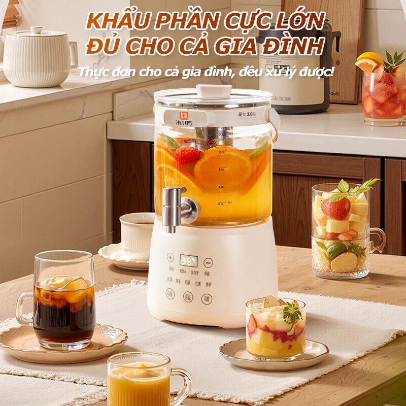 Ấm Nước Dung Tích Lớn 3L, Ấm Pha Trà Thông Minh, Bảo Ôn 24 Giờ, Bảng Cài Đặt Tiếng Việt