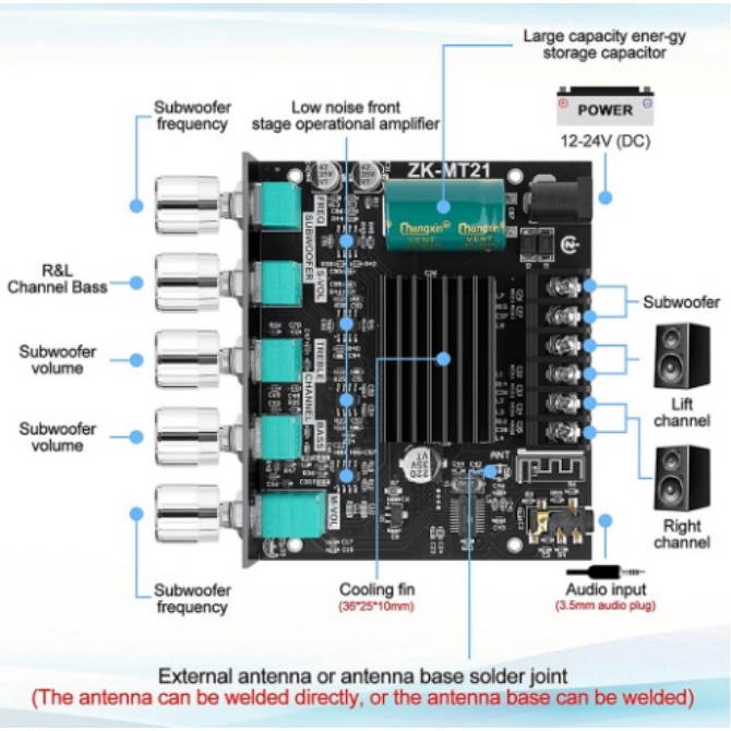 ZK-MT21 mạch khuếch đại âm thanh bluetooth TPA3116 2.1 Kênh Bluetooth 5.0 50WX2 Công suất 100W Âm than