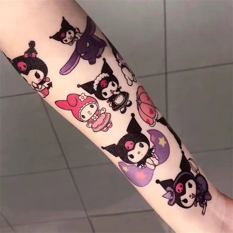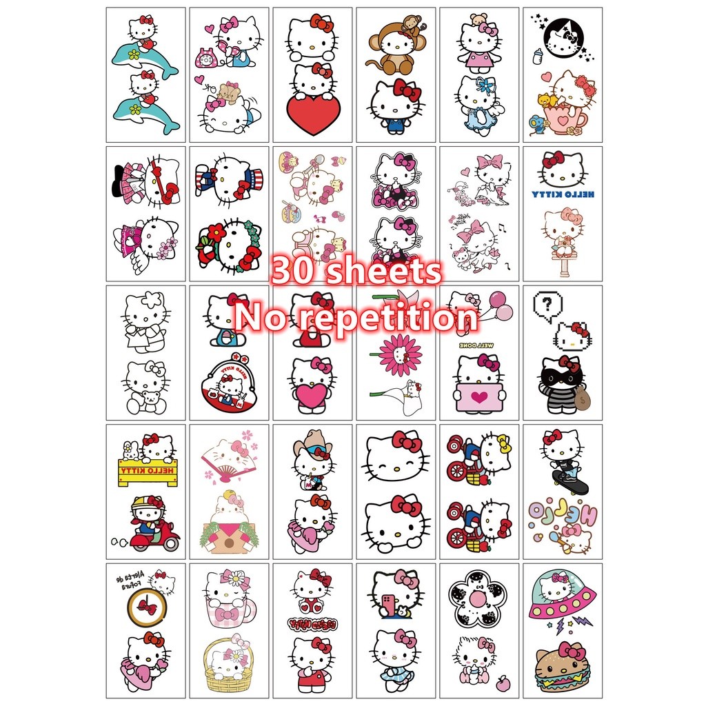 🍥jellycuty🍥30 Tờ Dán Hình Xăm Chống Thấm Nước, Hình Xăm Tạm Thời Lâu Dài, Dòng, Họa Tiết Hello kitty Hoạt Hình, Mặt Cánh Tay Sau