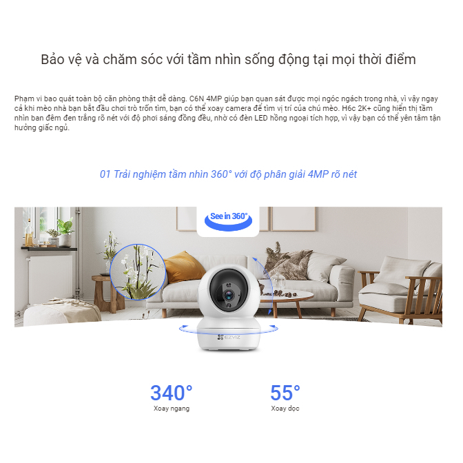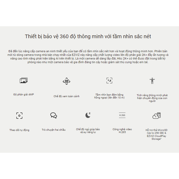 Camera wifi EZVIZ trong nhà H6C G1, C6N G1, C6N PRO, H6C PRO đàm thoại 2 chiều phát hiện chuyển động