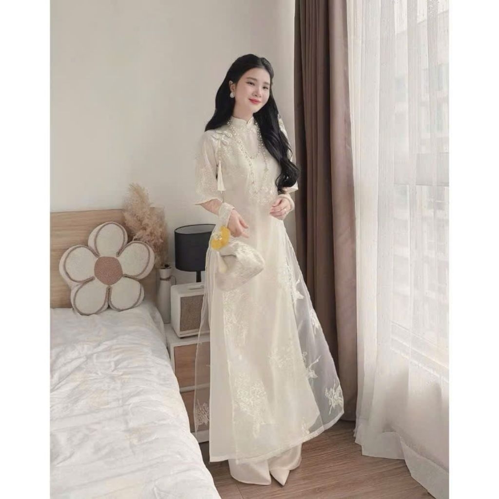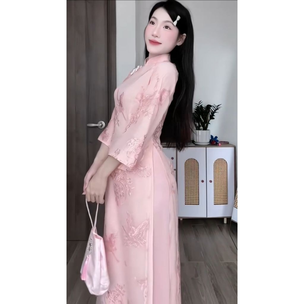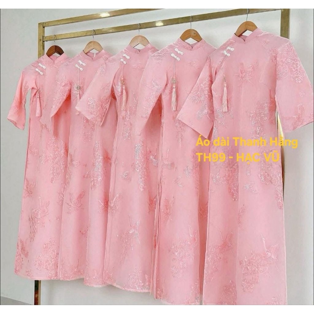 [SẴN HÀNG] TH99- Áo dài Hạc Vũ, Áo dài cách tân 4 tà, đính khuy tàu và Tặng kèm Charm - Áo dài Thanh Hằng