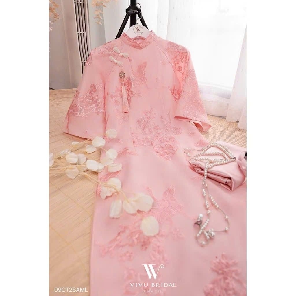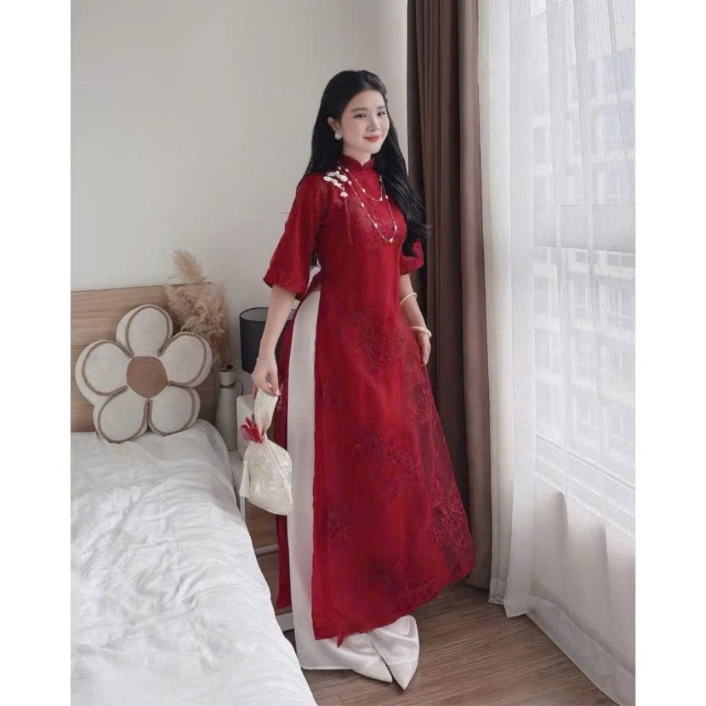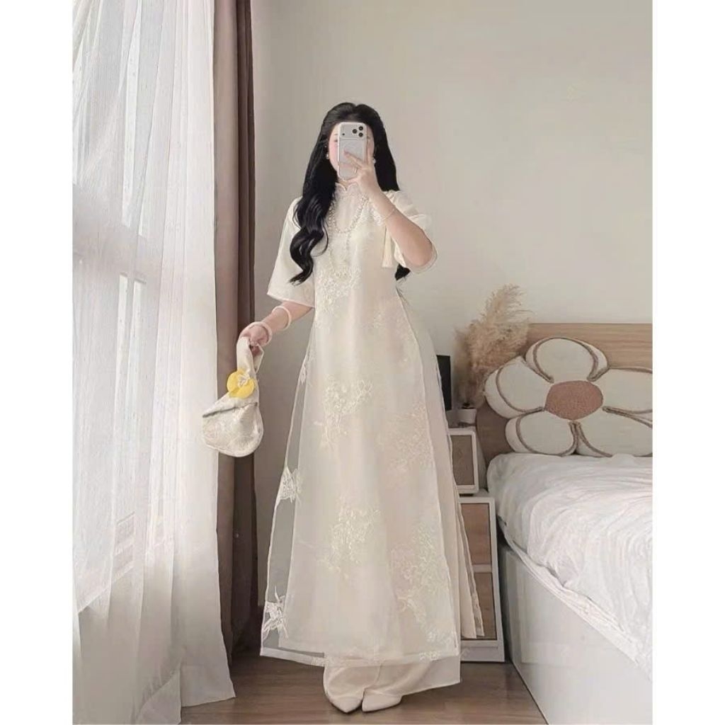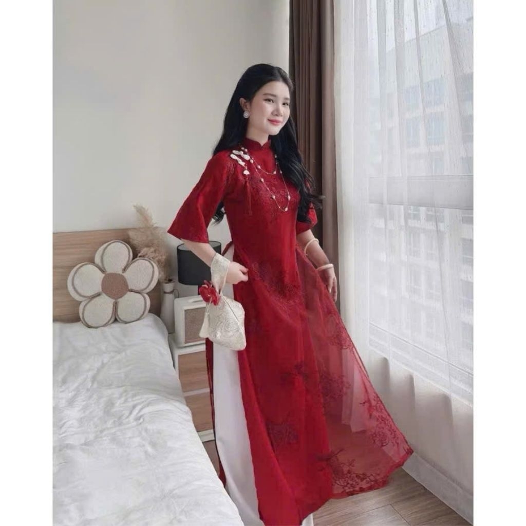 [SẴN HÀNG] TH99- Áo dài Hạc Vũ, Áo dài cách tân 4 tà, đính khuy tàu và Tặng kèm Charm - Áo dài Thanh Hằng