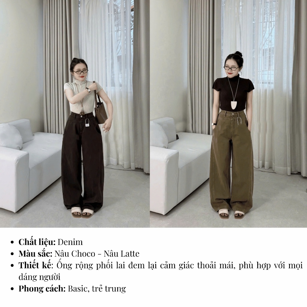 Quần Bò Jeans Nữ Ống Rộng Lai Chéo 2 màu Basic B0212 Quần Bò Nữ Lưng Cao Ống suông hách dáng mẫu mới 2025