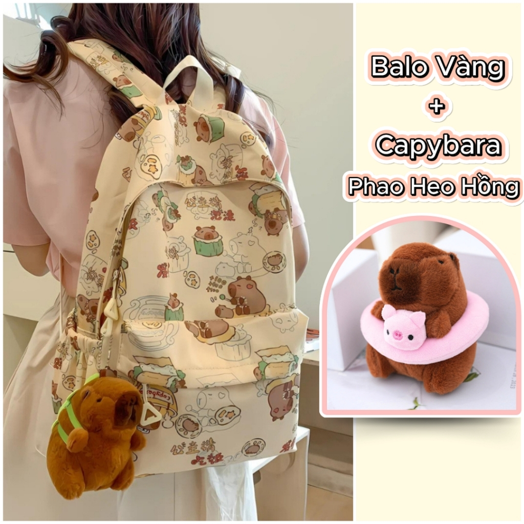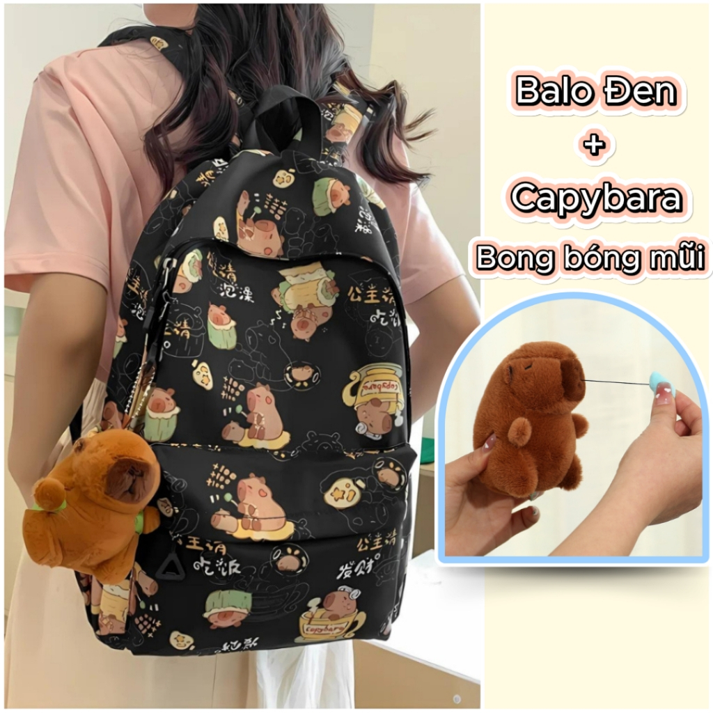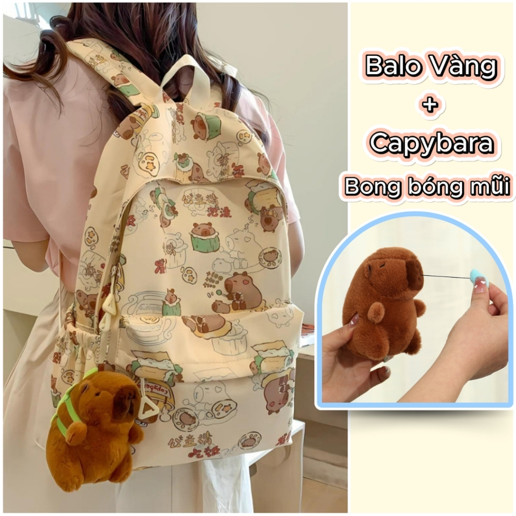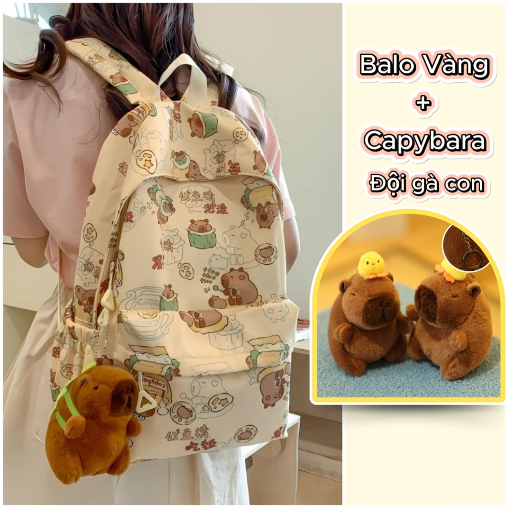 Balo Nữ Đi Học Balô Capybara Học Sinh Dễ Thương Kháng Nước Form Lớn Đựng Laptop 15.6 Inch Ulzzang